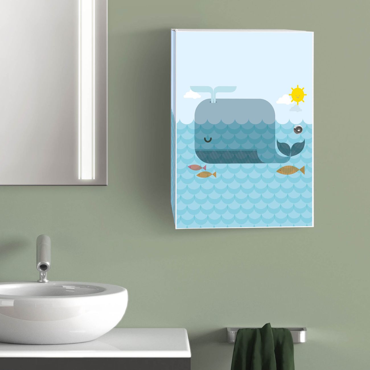 Medizinschrank Stahl Motiv Schlafender Wal