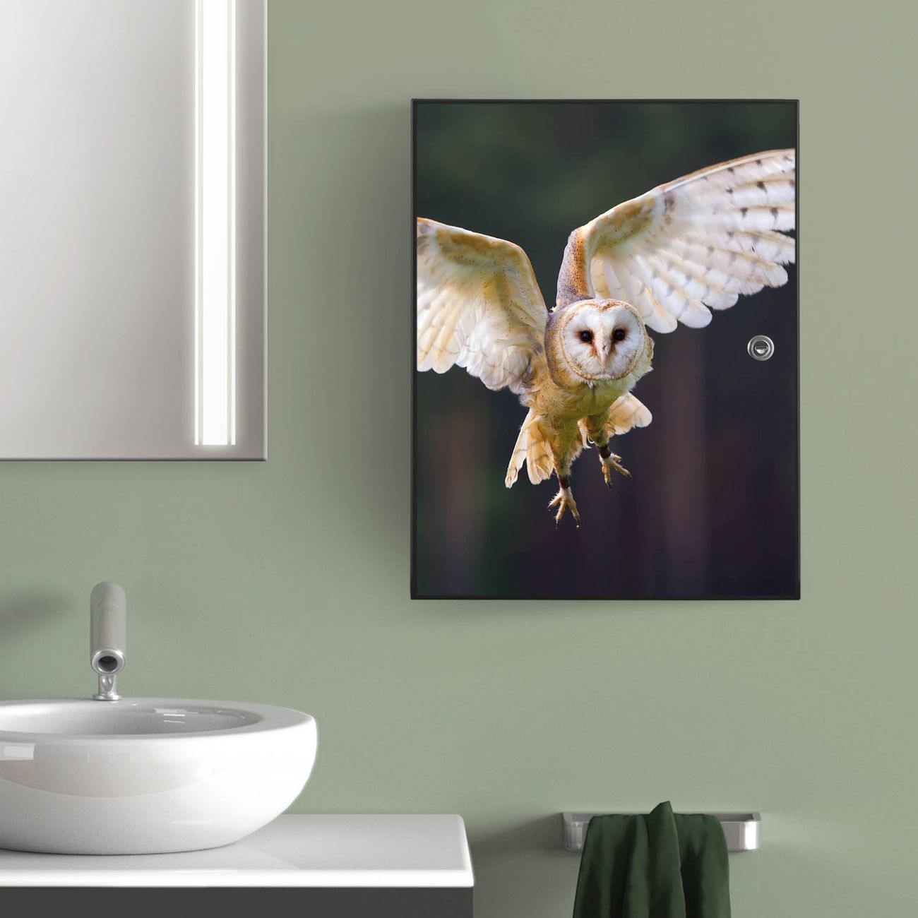 Medizinschrank Stahl Motiv Schleiereule