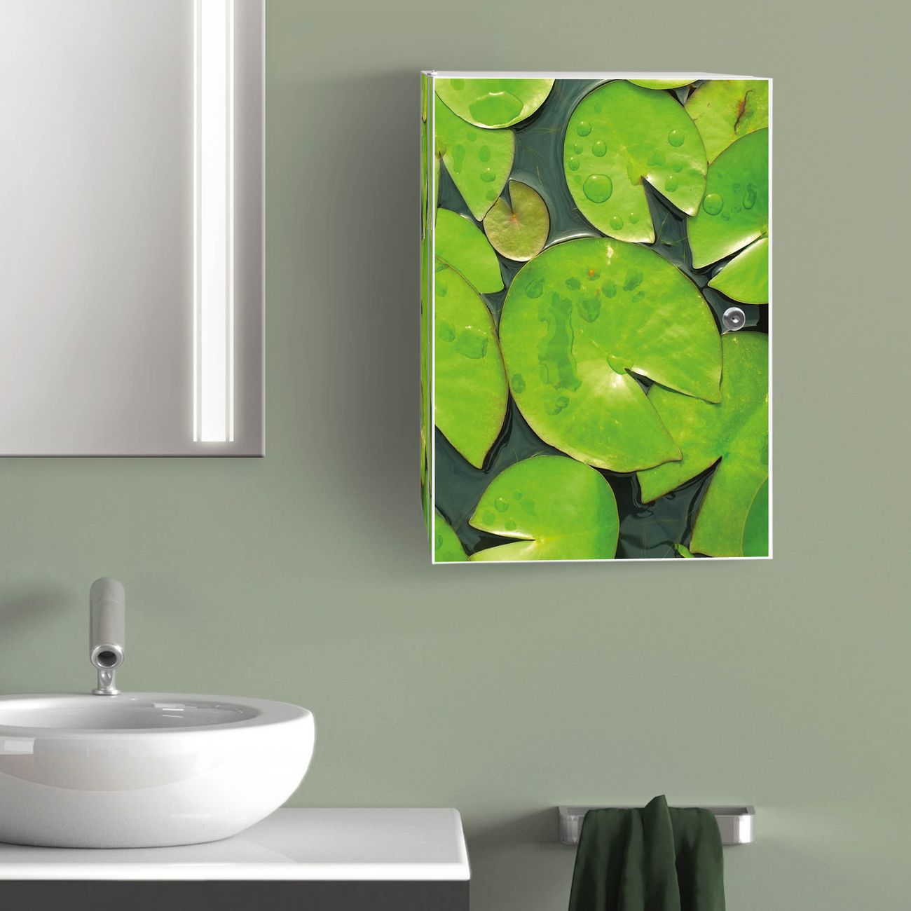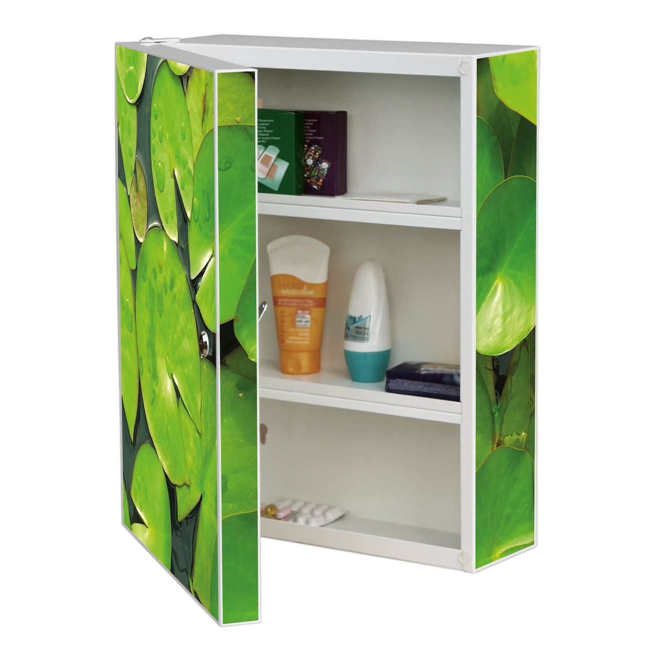 Medizinschrank Stahl Motiv Seerosenblätter