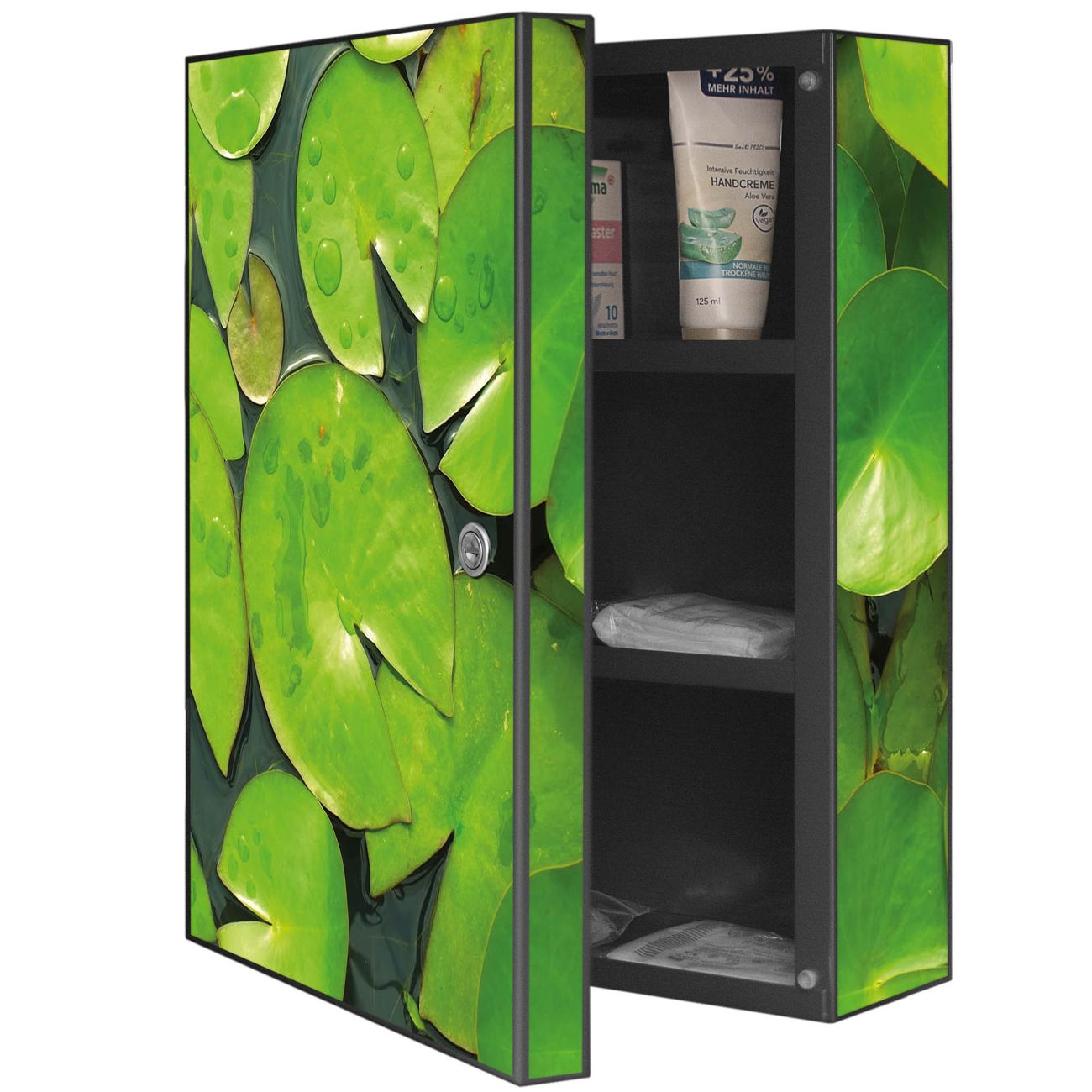 Medizinschrank Stahl Motiv Seerosenblätter