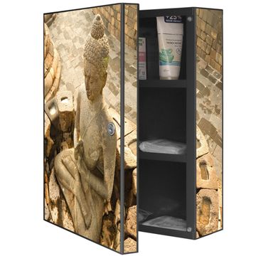 Medizinschrank Stahl Motiv Sitzender Buddha