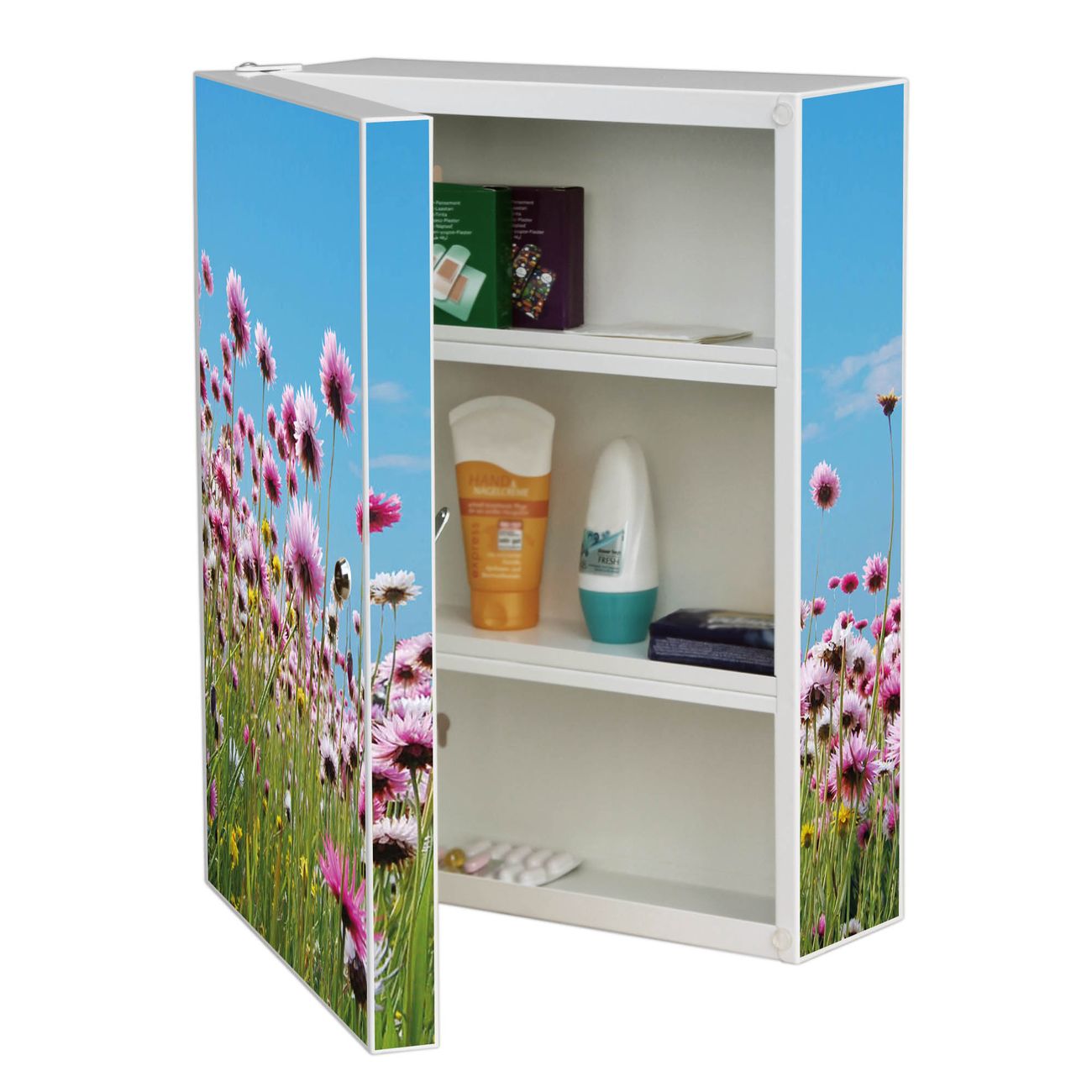 Medizinschrank Stahl Motiv Sommerblumen