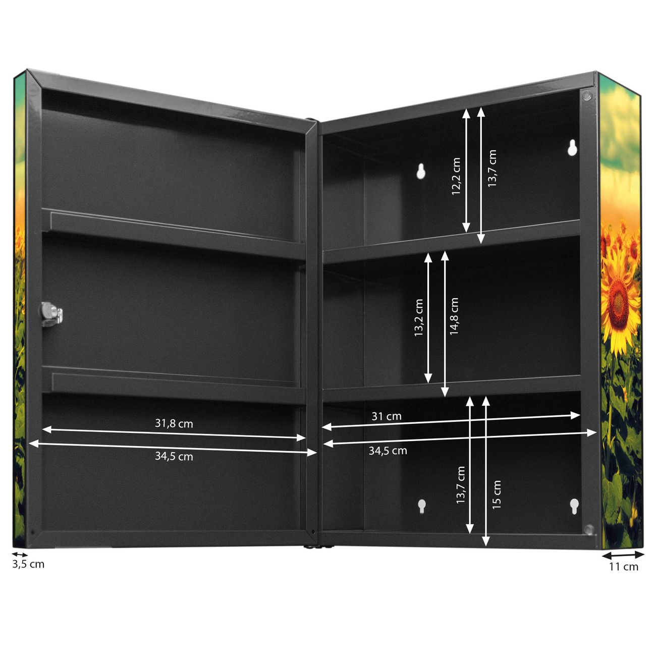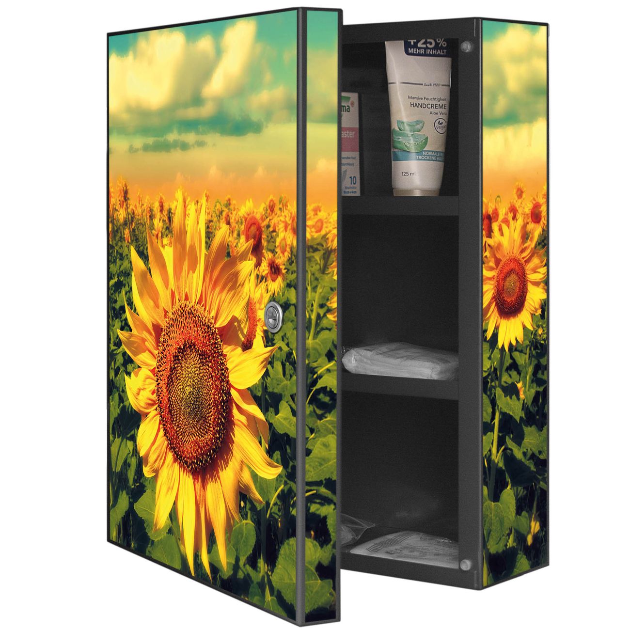 Medizinschrank Stahl Motiv Sonnenblumen