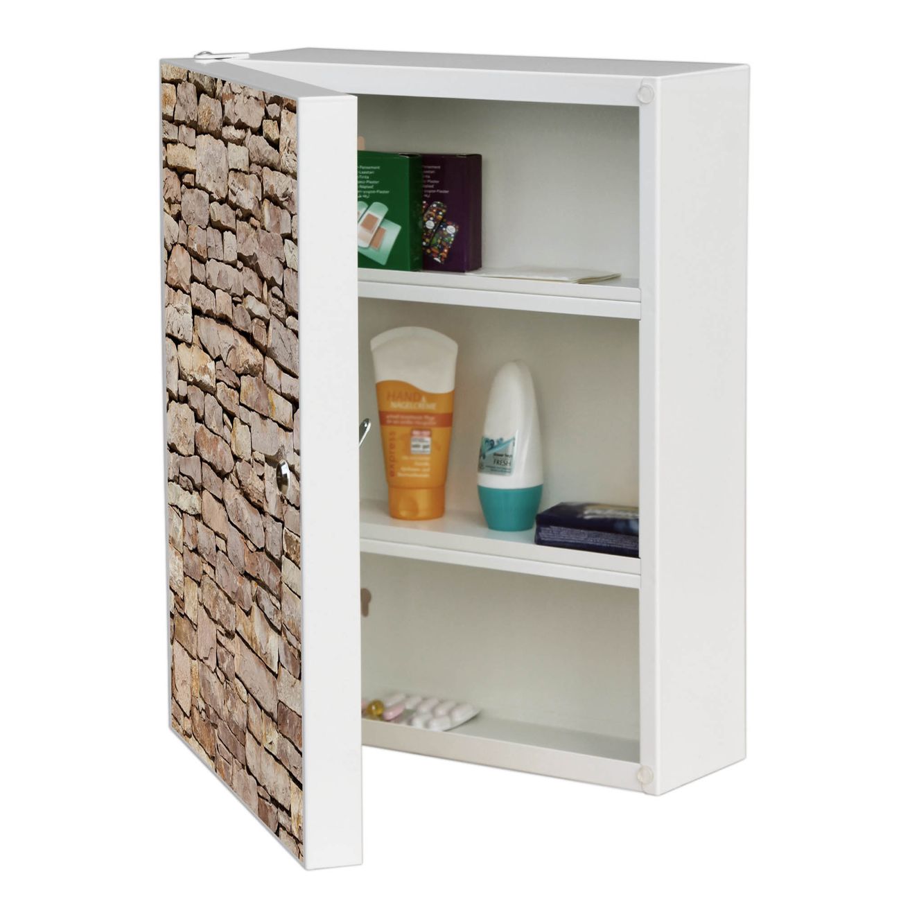 Medizinschrank Stahl Motiv Stadtmauer