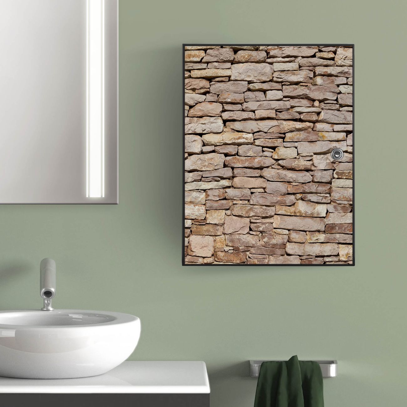 Medizinschrank Stahl Motiv Stadtmauer