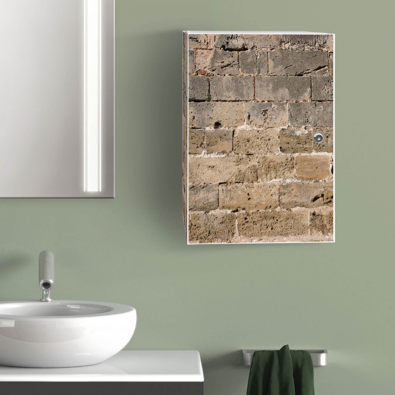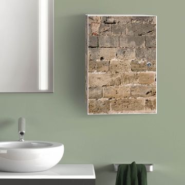 Medizinschrank Stahl Motiv Steinwand Antik