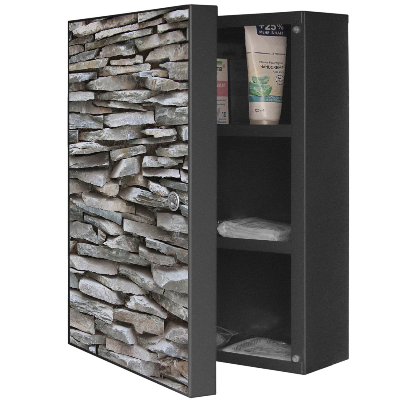 Der Medizinschrank ist gesamt 35x46x15cm groß und wiegt ca. 3900g. Der Türanschlag ist links und kann nicht verändert werden, die Fronttür öffnet ca. 115°. Die Folierung befindet sich auf der Front. Das Gehäuse ist zeitlos anthrazit und aus Stahl gefertigt. Die innenliegenden Fächer haben verschiedene Größen für unterschiedliche Aufbewahrungsmöglichkeiten, in der Innentür können ebenfalls Dinge abgelegt werden. Befestigt wird der Medizinschrank an 4 Stellen auf der Rückseite, Sie erhalten 3 Schlüssel.