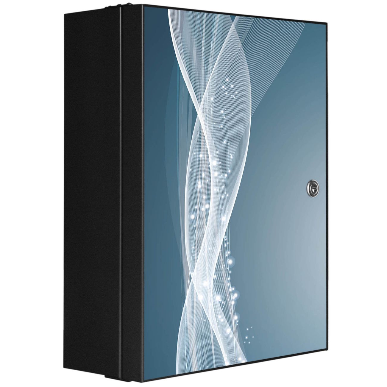 Der Medizinschrank ist gesamt 35x46x15cm groß und wiegt ca. 3900g. Der Türanschlag ist links und kann nicht verändert werden, die Fronttür öffnet ca. 115°. Die Folierung befindet sich auf der Front. Das Gehäuse ist zeitlos anthrazit und aus Stahl gefertigt. Die innenliegenden Fächer haben verschiedene Größen für unterschiedliche Aufbewahrungsmöglichkeiten, in der Innentür können ebenfalls Dinge abgelegt werden. Befestigt wird der Medizinschrank an 4 Stellen auf der Rückseite, Sie erhalten 3 Schlüssel.