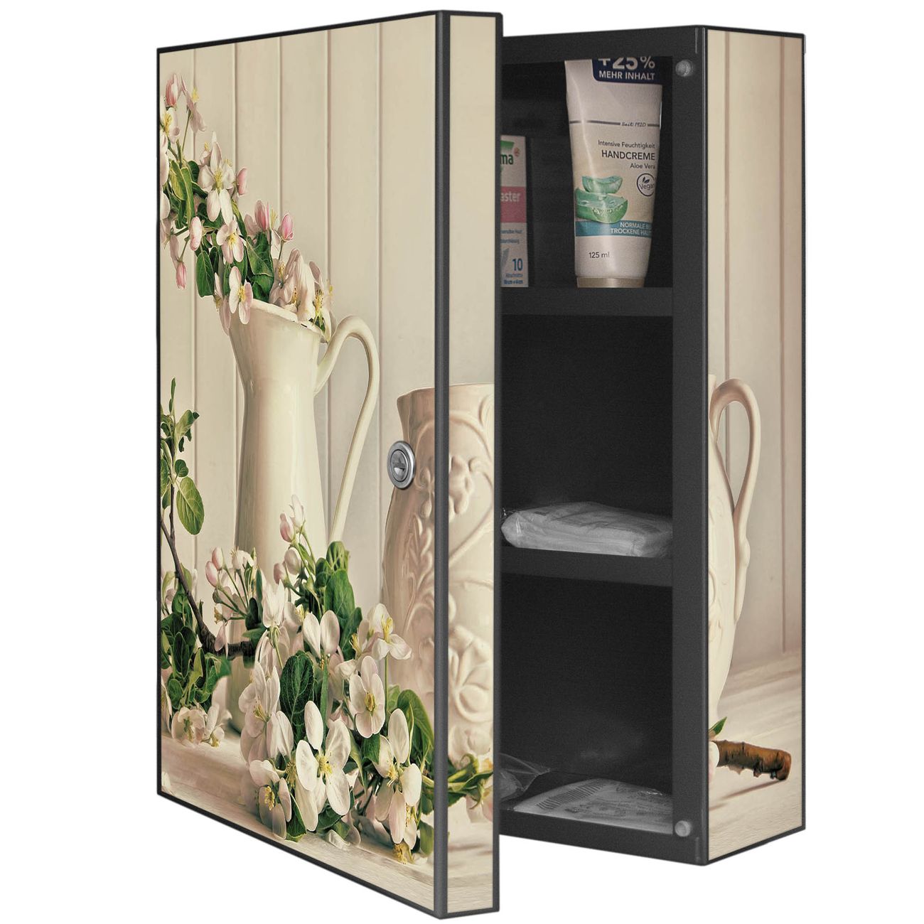 Medizinschrank Stahl Motiv Stillleben Kirschblüten