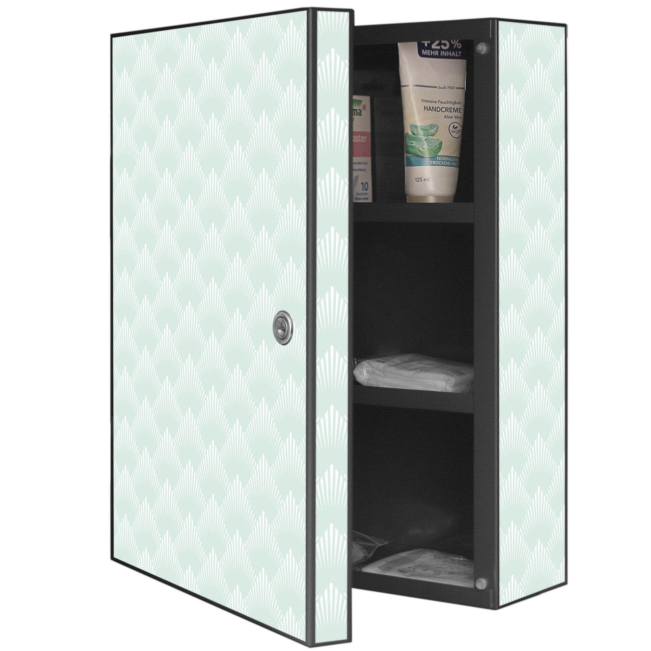 Medizinschrank Stahl Motiv Strahlen Mint