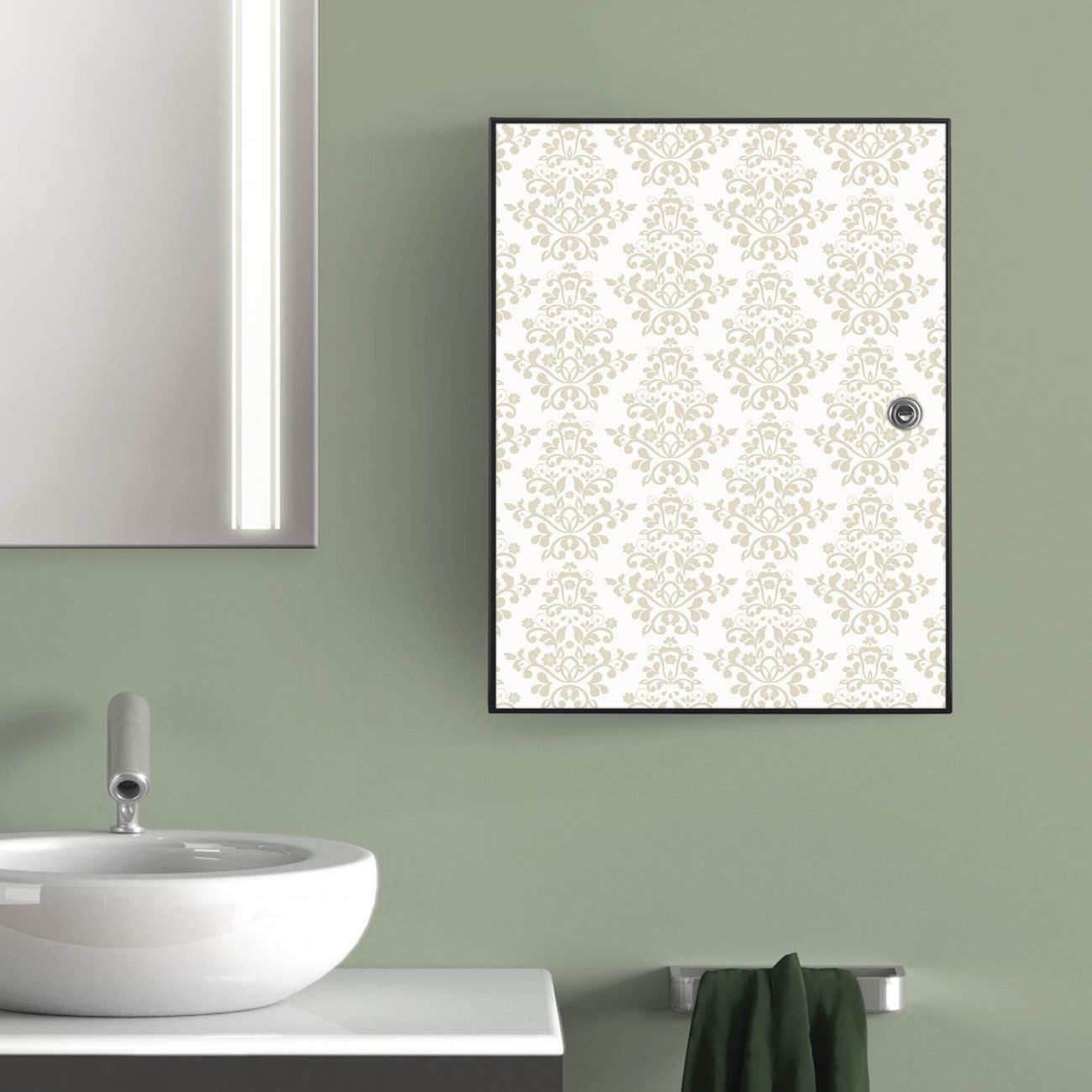 Medizinschrank Stahl Motiv Tapete Weiß