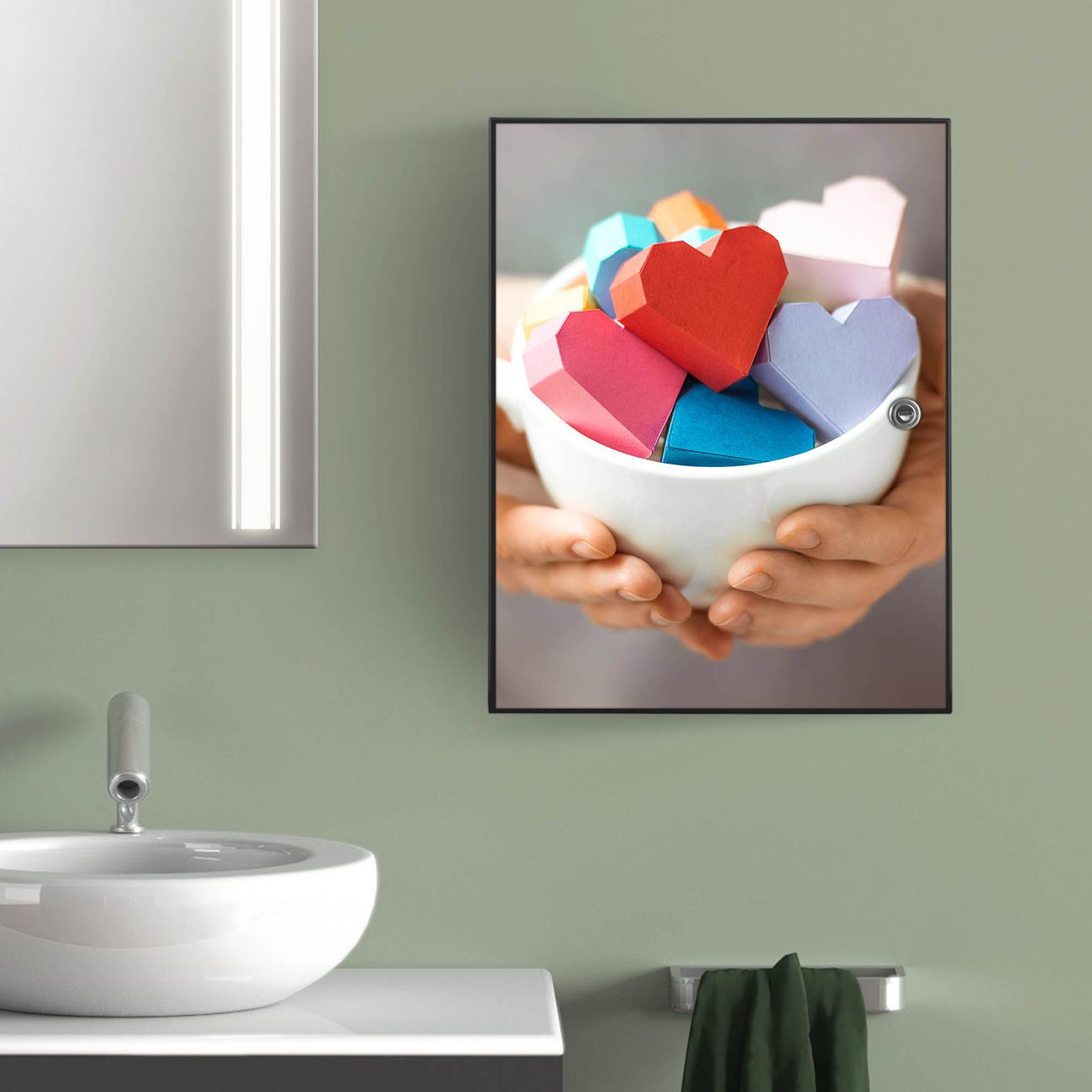 Medizinschrank Stahl Motiv Tasse voller Herzen