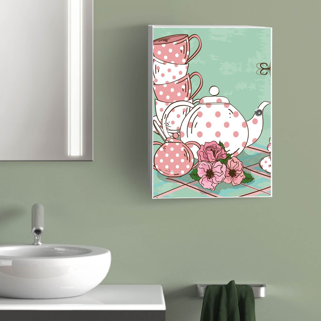 Medizinschrank Stahl Motiv Tea Time