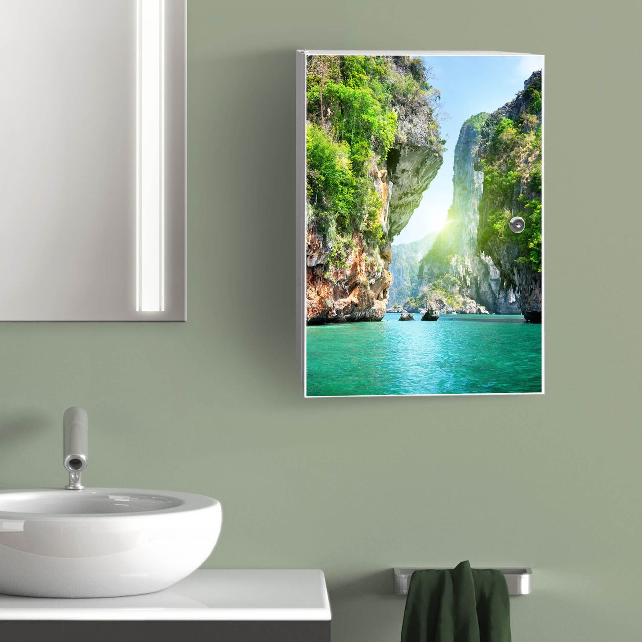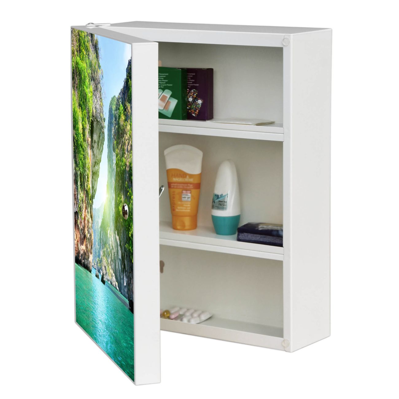 Medizinschrank Stahl Motiv Versteckte Bucht