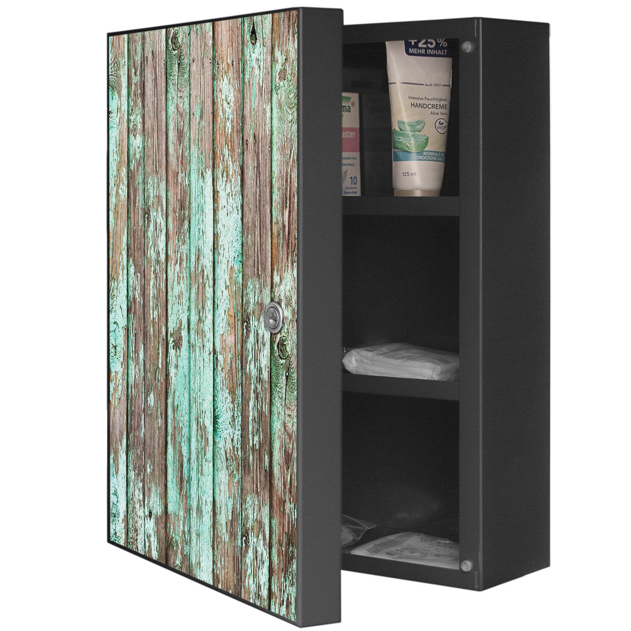 Medizinschrank Stahl Motiv Verwittertes Holz