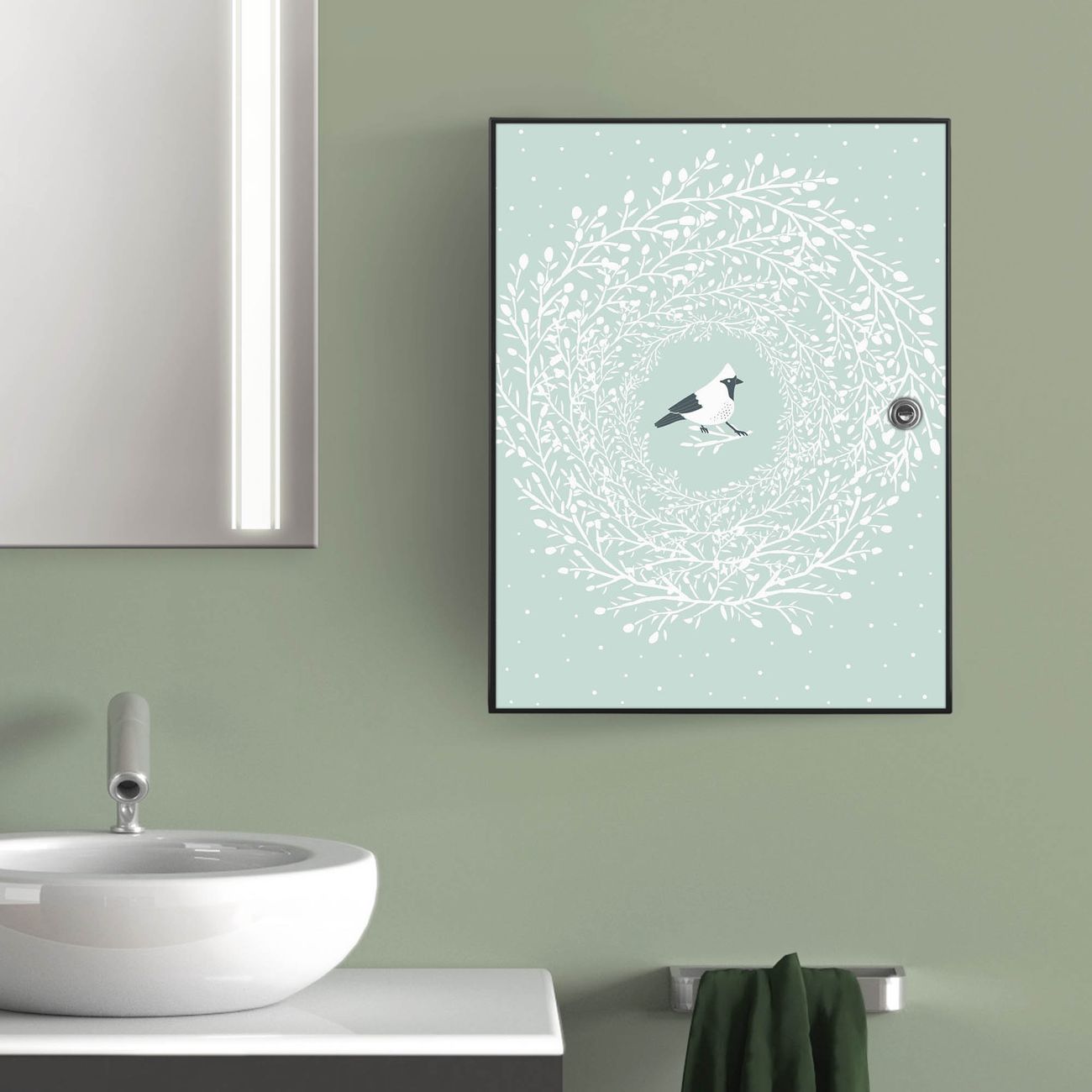 Medizinschrank Stahl Motiv Vogel im Kranz