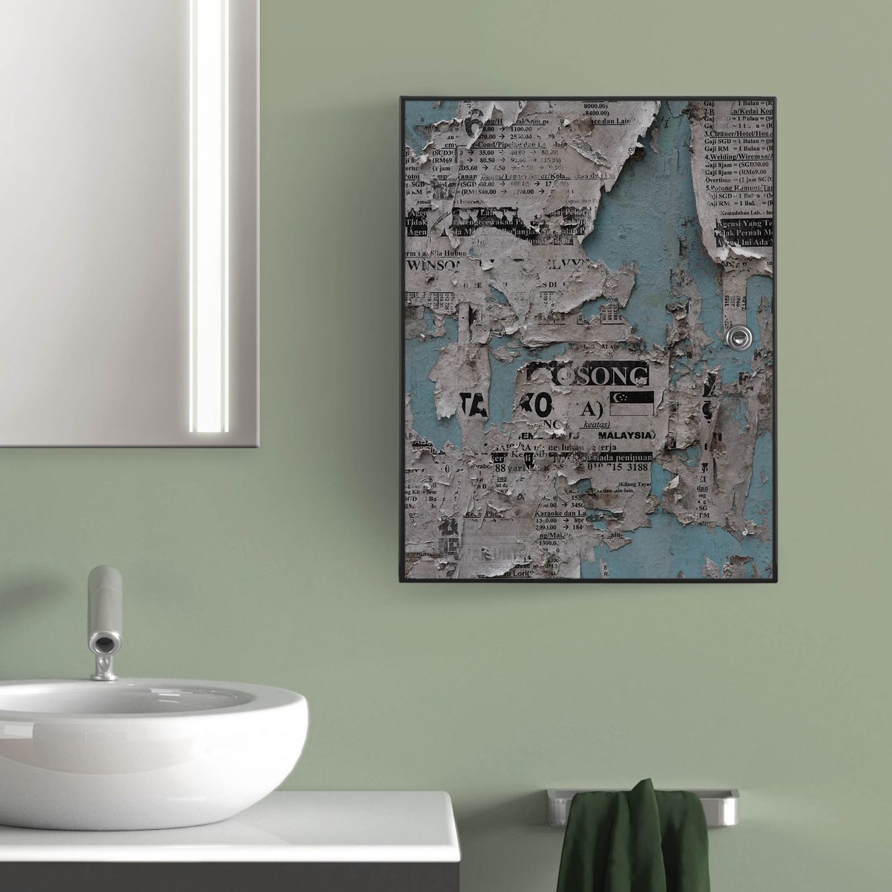 Medizinschrank Stahl Motiv Wand mit Zeitungen