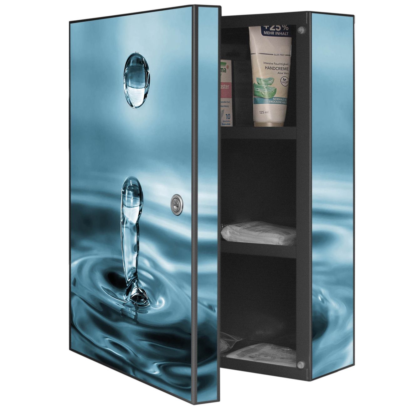 Der Medizinschrank ist gesamt 35x46x15cm groß und wiegt ca. 3900g. Der Türanschlag ist links und kann nicht verändert werden, die Fronttür öffnet ca. 115°. Die Folierung befindet sich auf der Front und den Seiten. Das Gehäuse ist zeitlos anthrazit und aus Stahl gefertigt. Die innenliegenden Fächer haben verschiedene Größen für unterschiedliche Aufbewahrungsmöglichkeiten, in der Innentür können ebenfalls Dinge abgelegt werden. Befestigt wird der Medizinschrank an 4 Stellen auf der Rückseite, Sie erhalten 3 Schlüssel.
