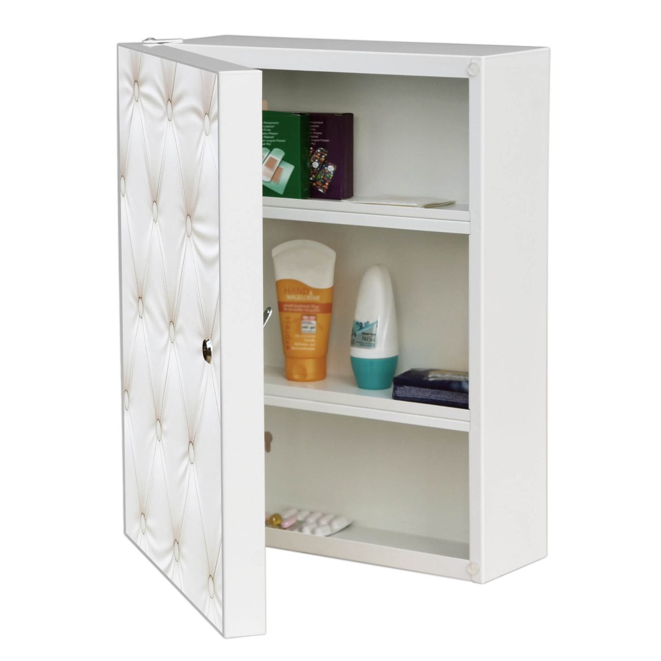 Medizinschrank Stahl Motiv Weißes Polster