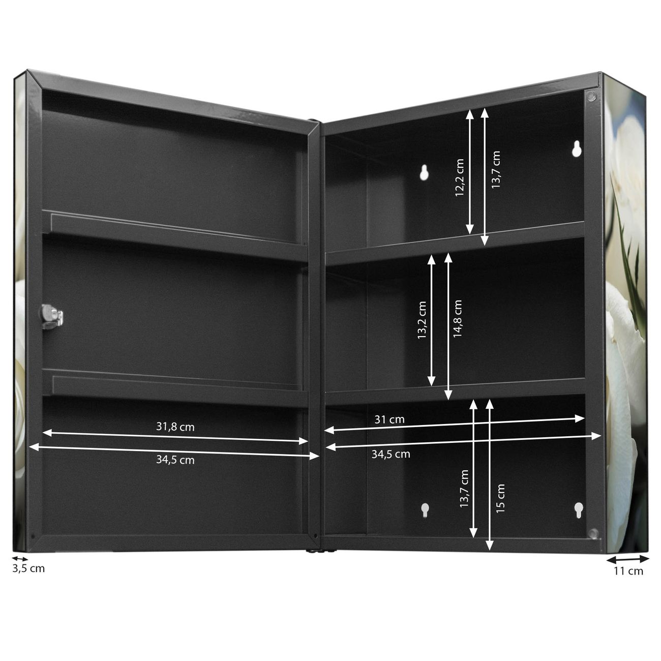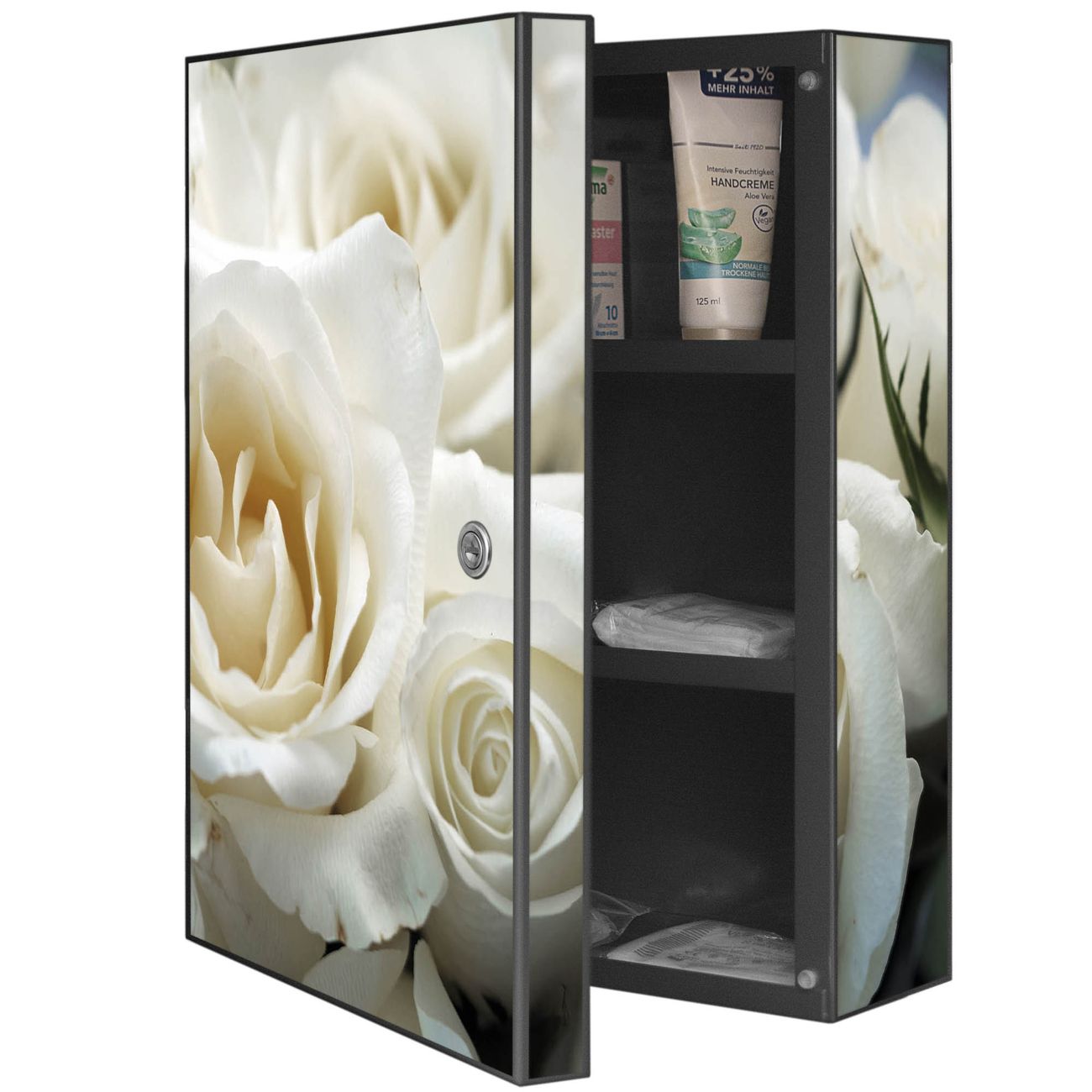 Medizinschrank Stahl Motiv White Roses