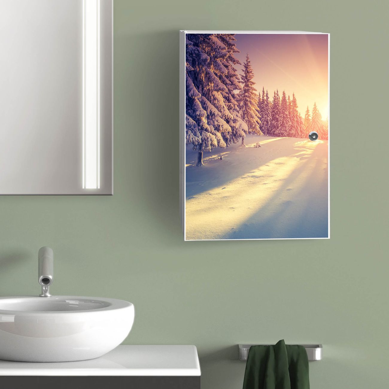 Medizinschrank Stahl Motiv Winterabend