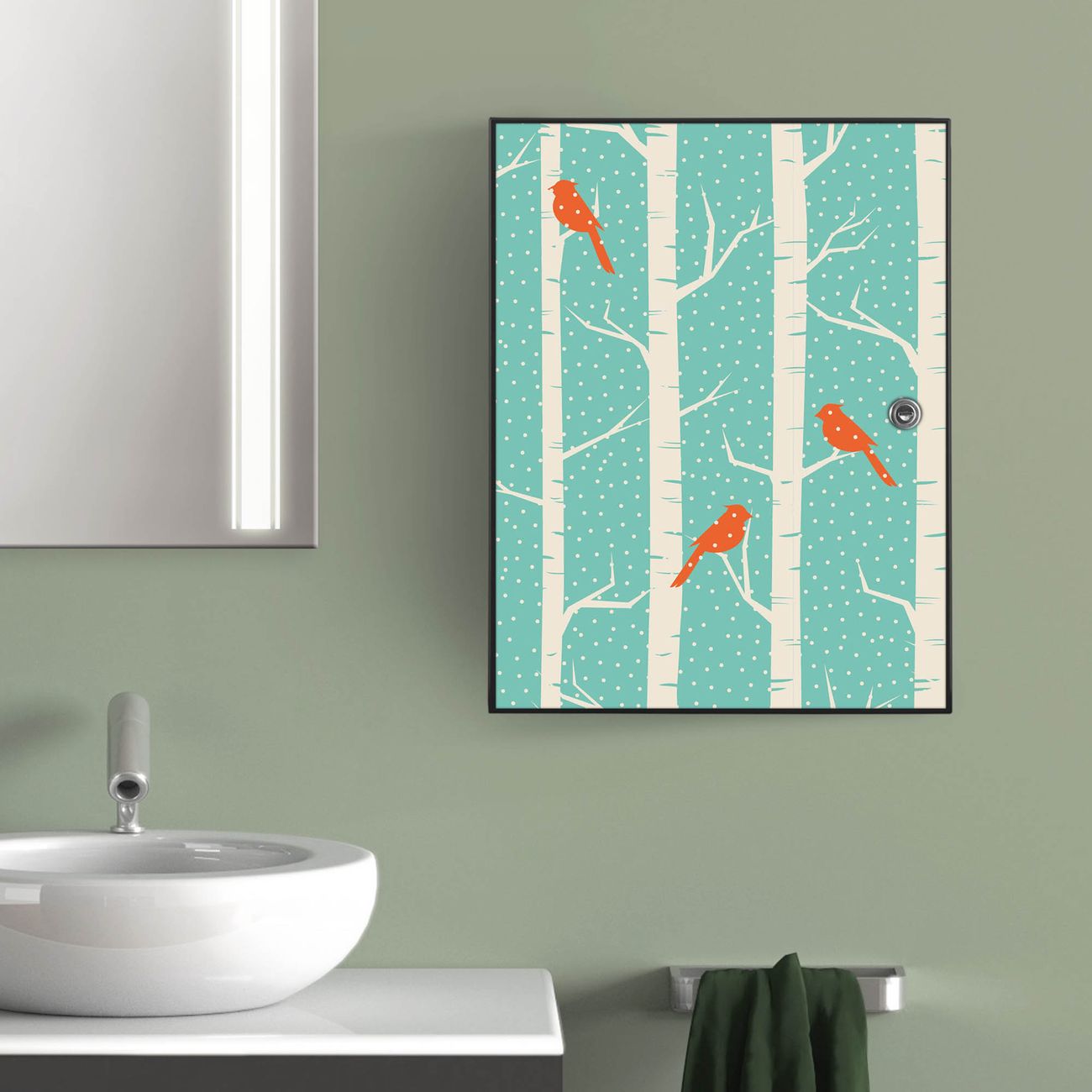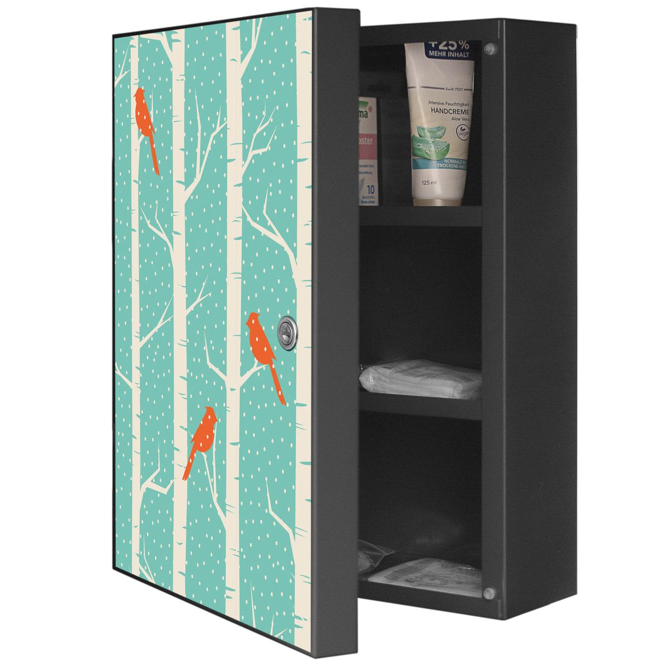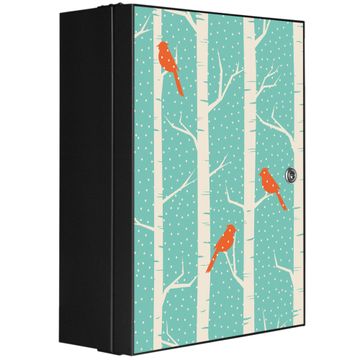 Medizinschrank Stahl Motiv Wintervögel
