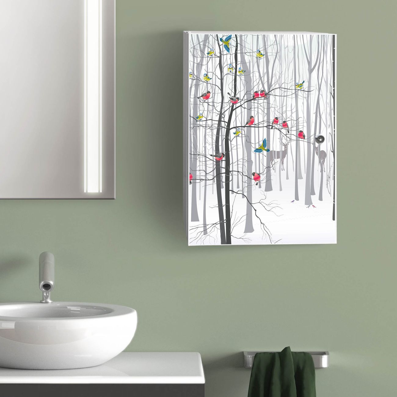 Medizinschrank Stahl Motiv Winterwald