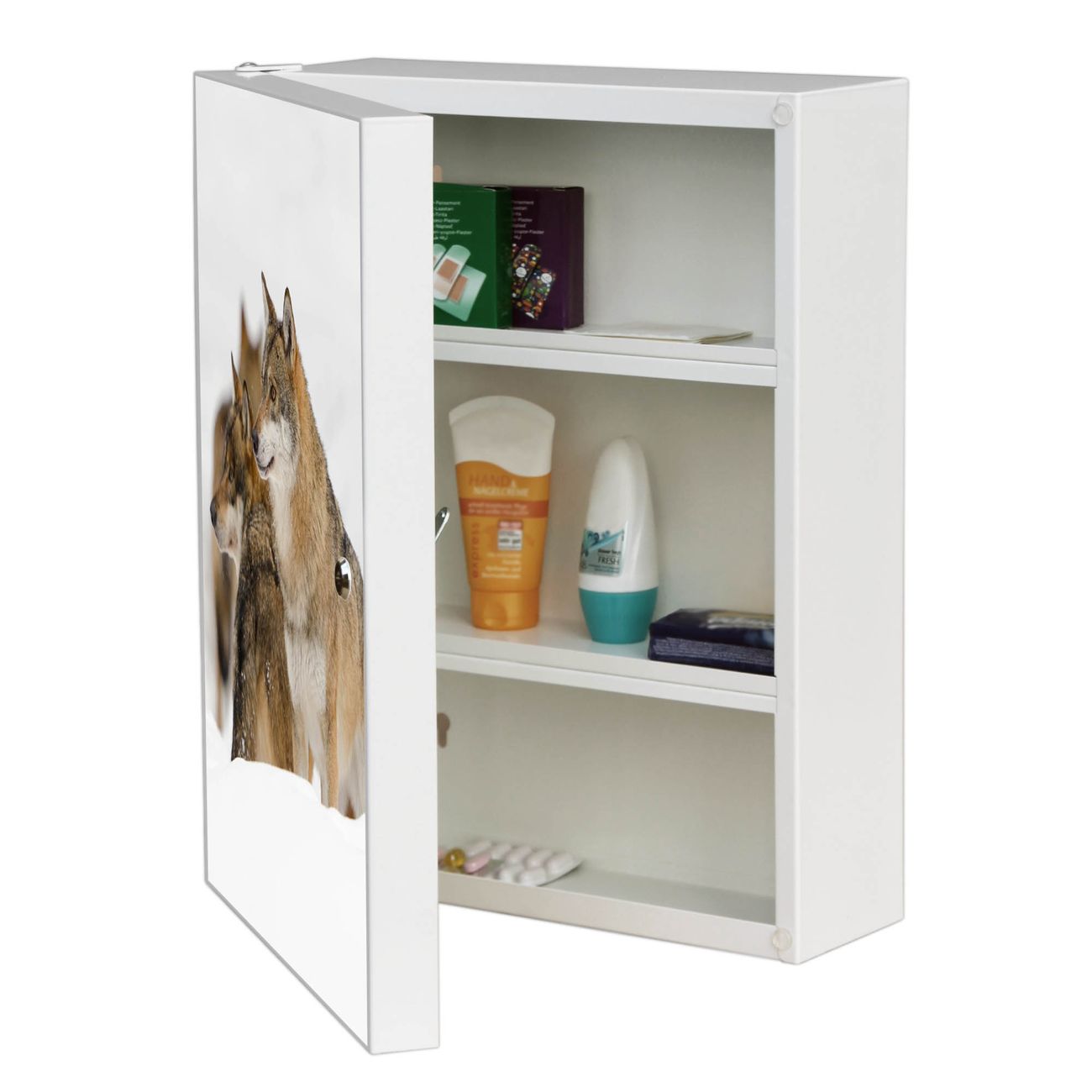 Der Medizinschrank ist gesamt 35x46x15cm groß und wiegt ca. 3900g. Der Türanschlag ist links und kann nicht verändert werden, die Fronttür öffnet ca. 115°. Die Folierung befindet sich auf der Front. Das Gehäuse ist zeitlos weiß und aus Stahl gefertigt. Die innenliegenden Fächer haben verschiedene Größen für unterschiedliche Aufbewahrungsmöglichkeiten, in der Innentür können ebenfalls Dinge abgelegt werden. Befestigt wird der Medizinschrank an 4 Stellen auf der Rückseite, Sie erhalten 3 Schlüssel.
