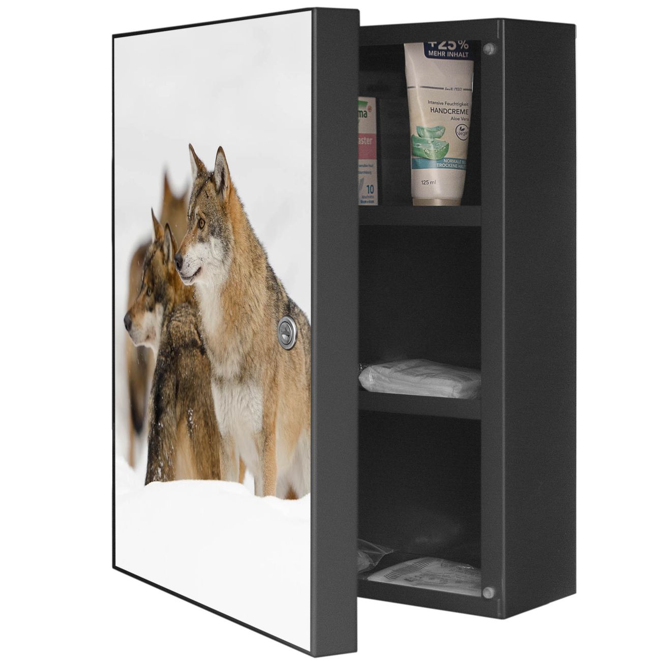 Medizinschrank Stahl Motiv Wölfe