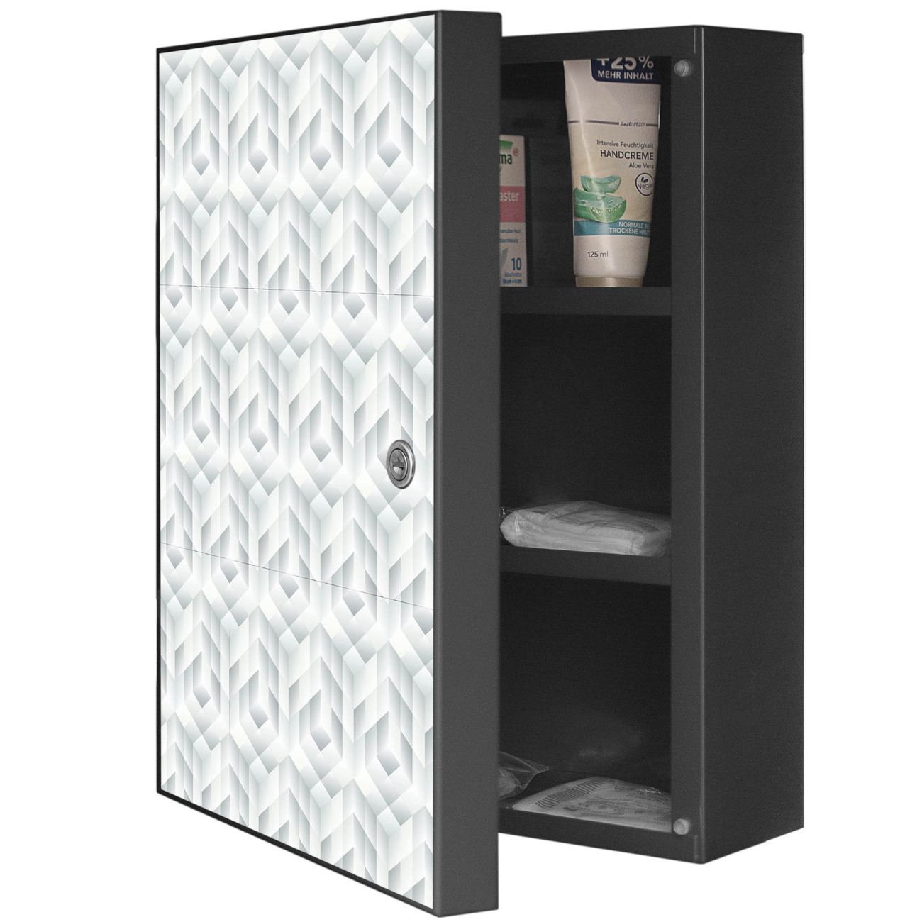 Medizinschrank Stahl Motiv Würfel Grau