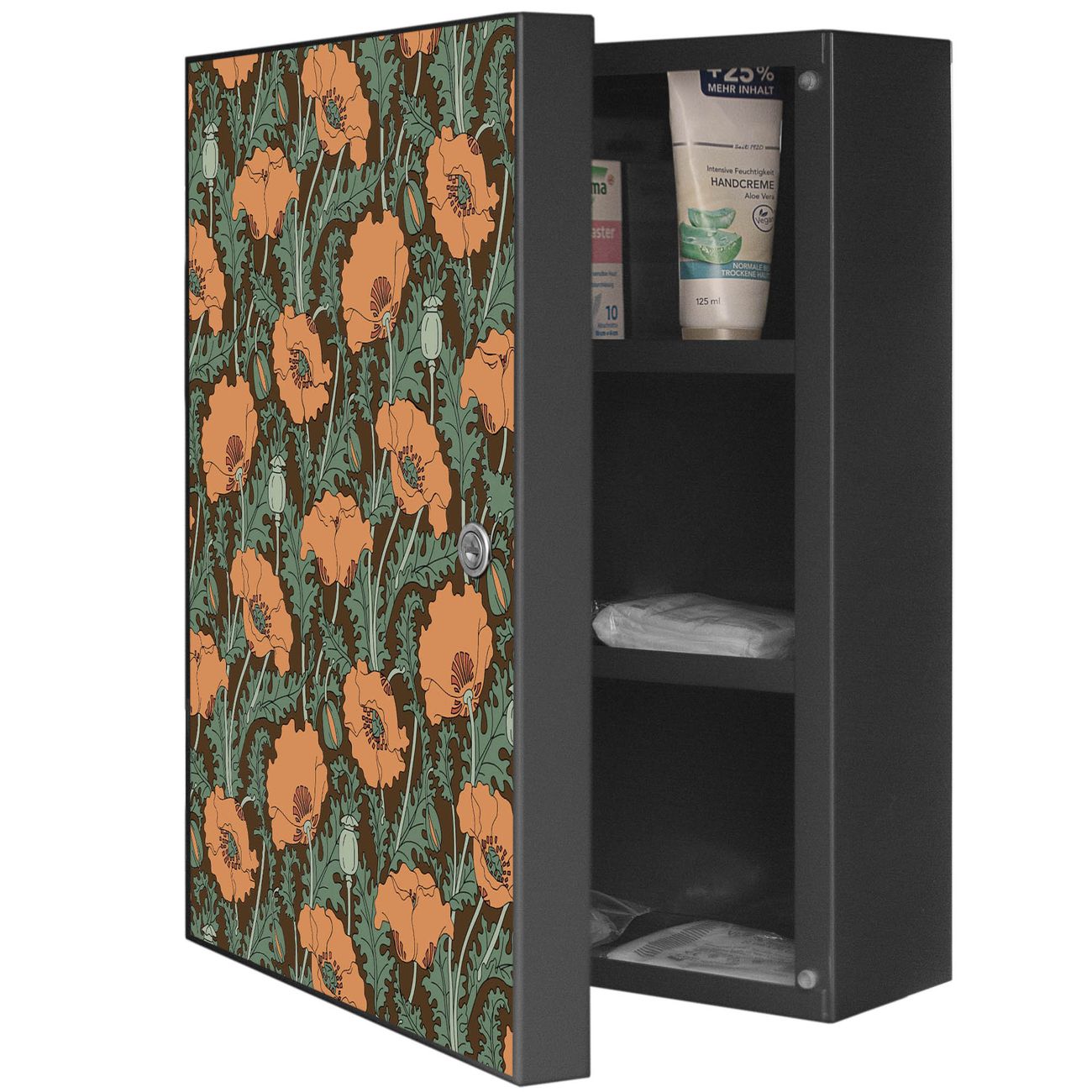 Medizinschrank Stahl Motiv Zeichnung Mohn