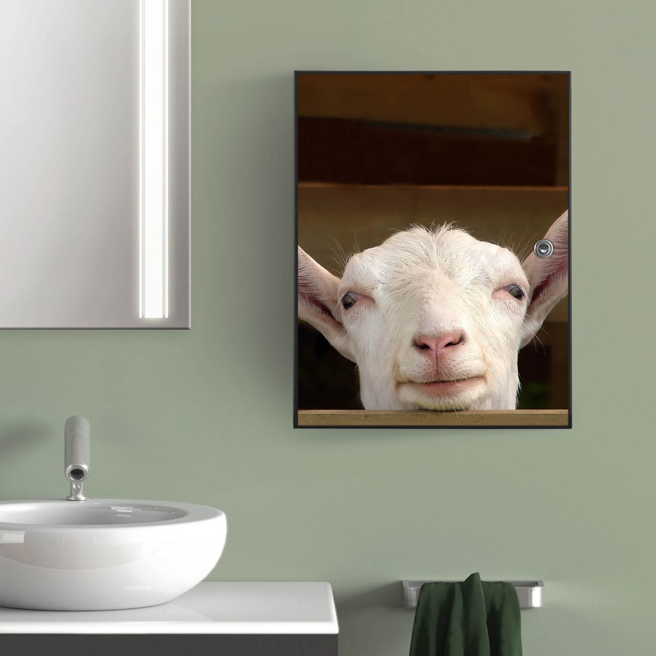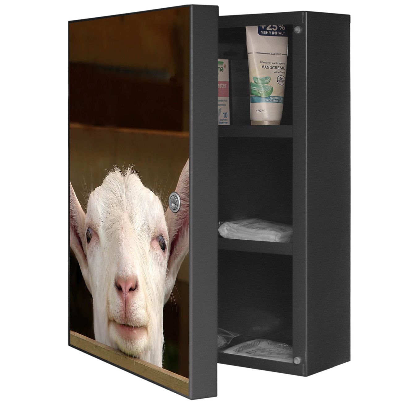 Medizinschrank Stahl Motiv Ziege