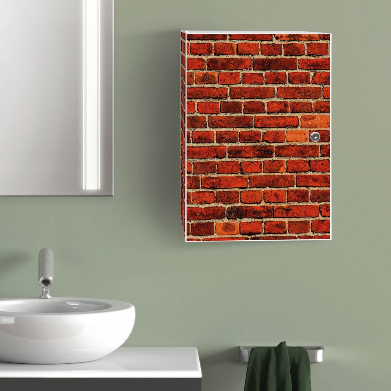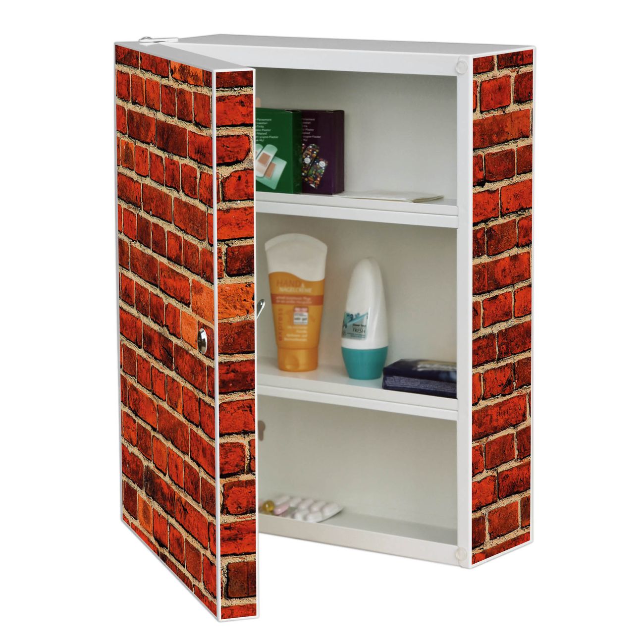 Medizinschrank Stahl Motiv Ziegelwand