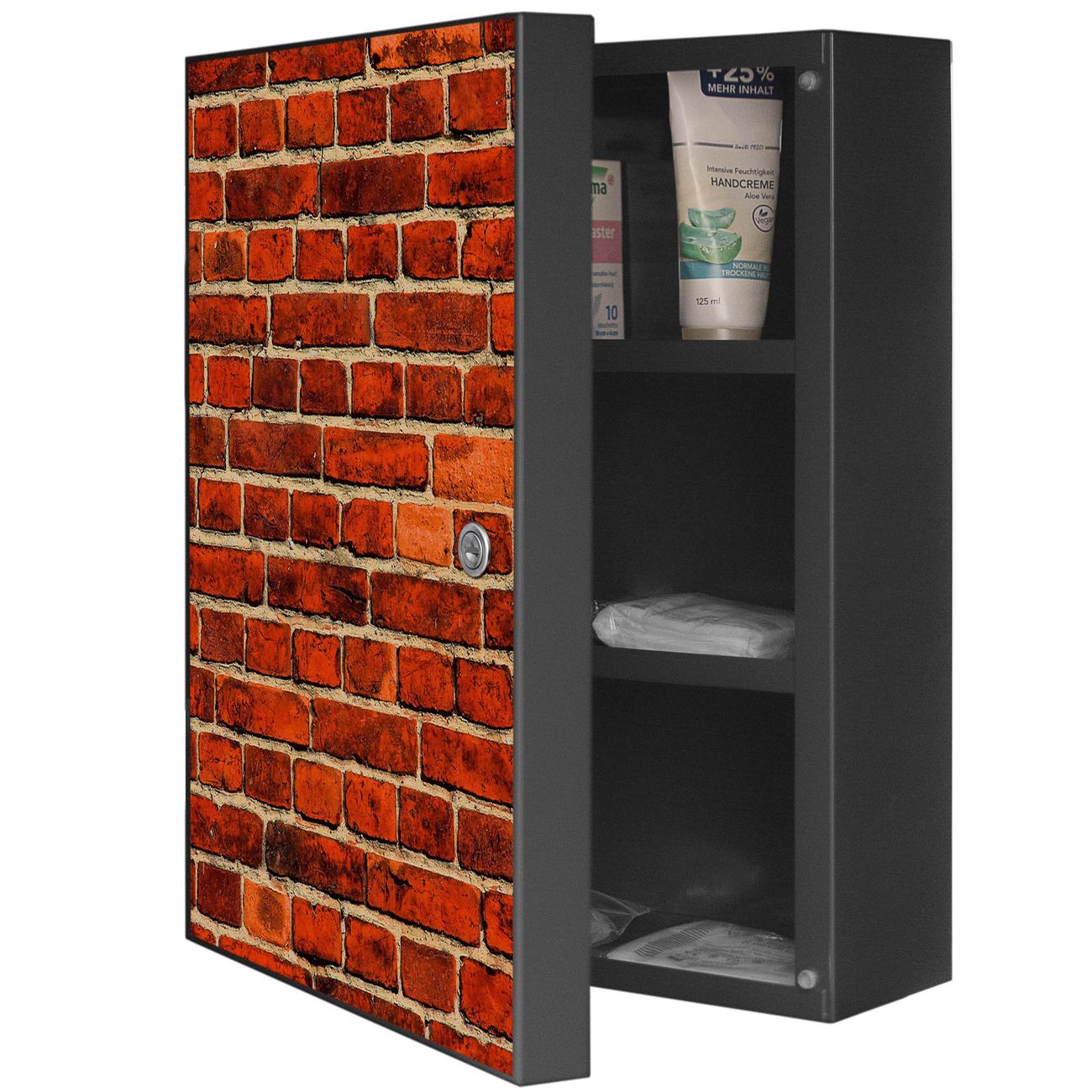 Der Medizinschrank ist gesamt 35x46x15cm groß und wiegt ca. 3900g. Der Türanschlag ist links und kann nicht verändert werden, die Fronttür öffnet ca. 115°. Die Folierung befindet sich auf der Front. Das Gehäuse ist zeitlos anthrazit und aus Stahl gefertigt. Die innenliegenden Fächer haben verschiedene Größen für unterschiedliche Aufbewahrungsmöglichkeiten, in der Innentür können ebenfalls Dinge abgelegt werden. Befestigt wird der Medizinschrank an 4 Stellen auf der Rückseite, Sie erhalten 3 Schlüssel.