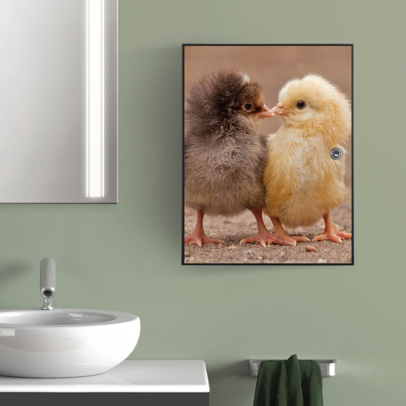 Medizinschrank Stahl Motiv Zwei Küken