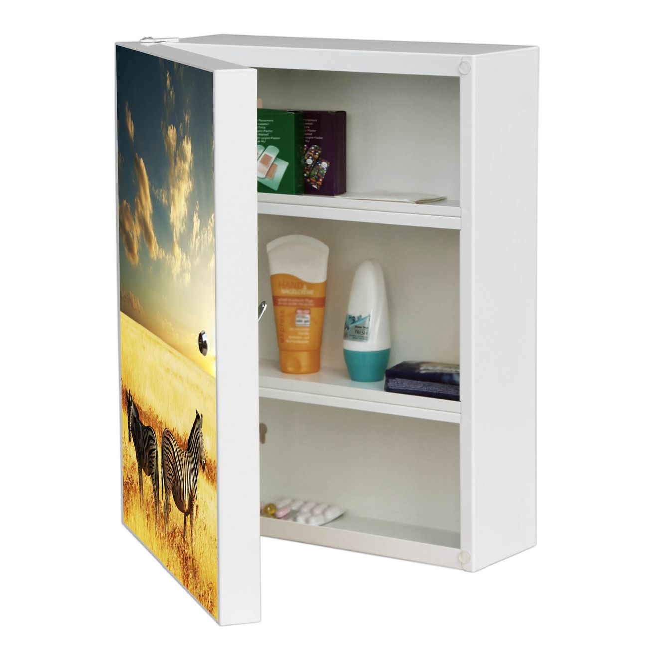 Medizinschrank Stahl Motiv Zwei Zebras