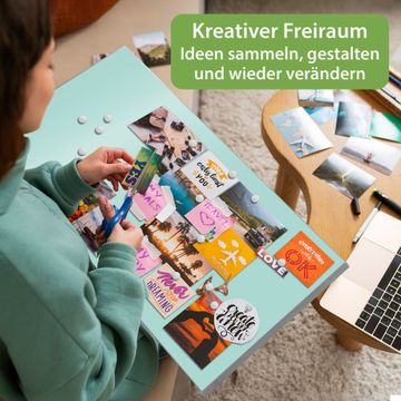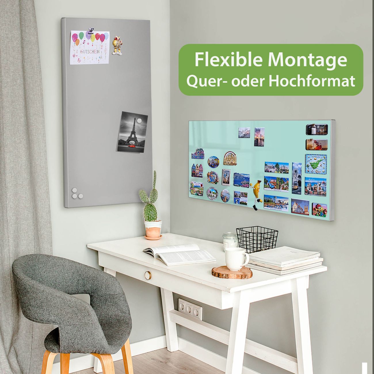 FUNKTION: Die banjado Magnettafel 78x37 cm im Design Farbe Mint vereint Funktionalität und modernes Wohndesign auf stilvolle Weise. Diese hochwertige Magnetwand aus Metall hilft Ihnen dabei, Notizen, Fotos, Termine, Einkaufslisten oder Rezepte übersichtlich zu organisieren. Als praktisches Memoboard sorgt sie für Struktur im Alltag und setzt gleichzeitig einen dekorativen Akzent an Ihrer Wand. DESIGN: Die Metalltafel besteht aus robustem, lackiertem Stahl und ist mit allen handelsüblichen Magneten nutzbar. Besonders praktisch ist die beschreibbare Oberfläche. Sie können die Magnettafel ganz einfach mit Kreidestiften beschriften und die Inhalte bei Bedarf mit einem feuchten Tuch wieder entfernen. So eignet sich das Memoboard ideal für Wochenpläne, Menüpläne, To Do Listen oder kreative Botschaften. DETAILS: Mit ihrem großzügigen Querformat von 78x37 cm bietet die Magnettafel ausreichend Platz für Ihre Organisation. Das Motiv Farbe Mint bringt eine warme, natürliche Optik in Küche, Flur, Büro oder Homeoffice und wirkt auch ohne Magnete oder Beschriftung wie ein modernes Wandbild. NUTZEN: Auf der Rückseite befinden sich vorgefertigte Löcher für eine schnelle und unkomplizierte Wandmontage. Jede banjado Magnettafel wird in Deutschland gefertigt und steht für Qualität, Langlebigkeit und liebevolle Verarbeitung. Dieses beschreibbare Memoboard ist die perfekte Kombination aus Metalltafel, Designobjekt und praktischer Magnetwand für Ihren Alltag. BANJADO: Wir sind ein kleines Team aus dem Herzen von Sachsen. Wir fertigen alle Artikel von Hand für Sie an, Sie erhalten keine preiswerte Importware. Auf Wunsch können Sie auch Ihr eigenes Foto auf die Magnettafel aufbringen, schreiben Sie uns an. Herzlichst, Ihr banjado-Team