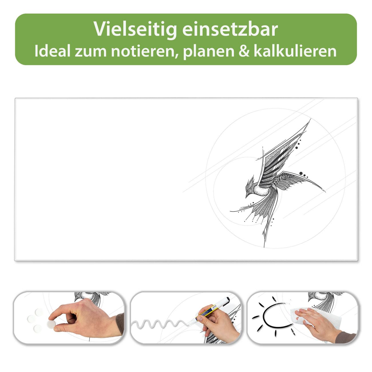 Metall Magnettafel beschreibbar 78x37cm Motiv Abstrakte Schwalbe
