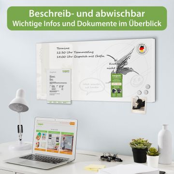FUNKTION: Die banjado Magnettafel 78x37 cm im Design Motiv Abstrakte Schwalbe vereint Funktionalität und modernes Wohndesign auf stilvolle Weise. Diese hochwertige Magnetwand aus Metall hilft Ihnen dabei, Notizen, Fotos, Termine, Einkaufslisten oder Rezepte übersichtlich zu organisieren. Als praktisches Memoboard sorgt sie für Struktur im Alltag und setzt gleichzeitig einen dekorativen Akzent an Ihrer Wand. DESIGN: Die Metalltafel besteht aus robustem, lackiertem Stahl und ist mit allen handelsüblichen Magneten nutzbar. Besonders praktisch ist die beschreibbare Oberfläche. Sie können die Magnettafel ganz einfach mit Kreidestiften beschriften und die Inhalte bei Bedarf mit einem feuchten Tuch wieder entfernen. So eignet sich das Memoboard ideal für Wochenpläne, Menüpläne, To Do Listen oder kreative Botschaften. DETAILS: Mit ihrem großzügigen Querformat von 78x37 cm bietet die Magnettafel ausreichend Platz für Ihre Organisation. Das Motiv Motiv Abstrakte Schwalbe bringt eine warme, natürliche Optik in Küche, Flur, Büro oder Homeoffice und wirkt auch ohne Magnete oder Beschriftung wie ein modernes Wandbild. NUTZEN: Auf der Rückseite befinden sich vorgefertigte Löcher für eine schnelle und unkomplizierte Wandmontage. Jede banjado Magnettafel wird in Deutschland gefertigt und steht für Qualität, Langlebigkeit und liebevolle Verarbeitung. Dieses beschreibbare Memoboard ist die perfekte Kombination aus Metalltafel, Designobjekt und praktischer Magnetwand für Ihren Alltag. BANJADO: Wir sind ein kleines Team aus dem Herzen von Sachsen. Wir fertigen alle Artikel von Hand für Sie an, Sie erhalten keine preiswerte Importware. Auf Wunsch können Sie auch Ihr eigenes Foto auf die Magnettafel aufbringen, schreiben Sie uns an. Herzlichst, Ihr banjado-Team