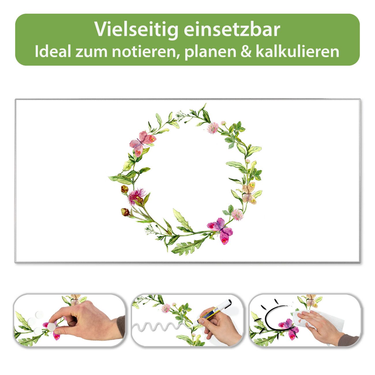Metall Magnettafel beschreibbar 78x37cm Motiv Aquarell Blumenring