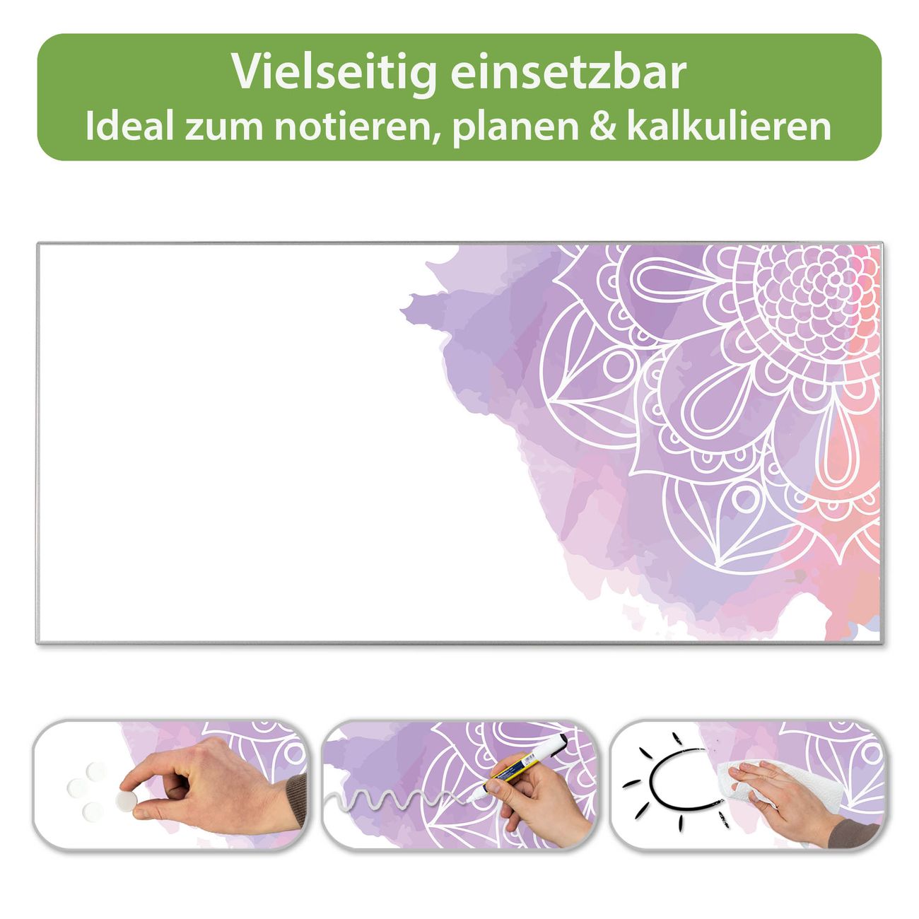Metall Magnettafel beschreibbar 78x37cm Motiv Aquarell Mandala