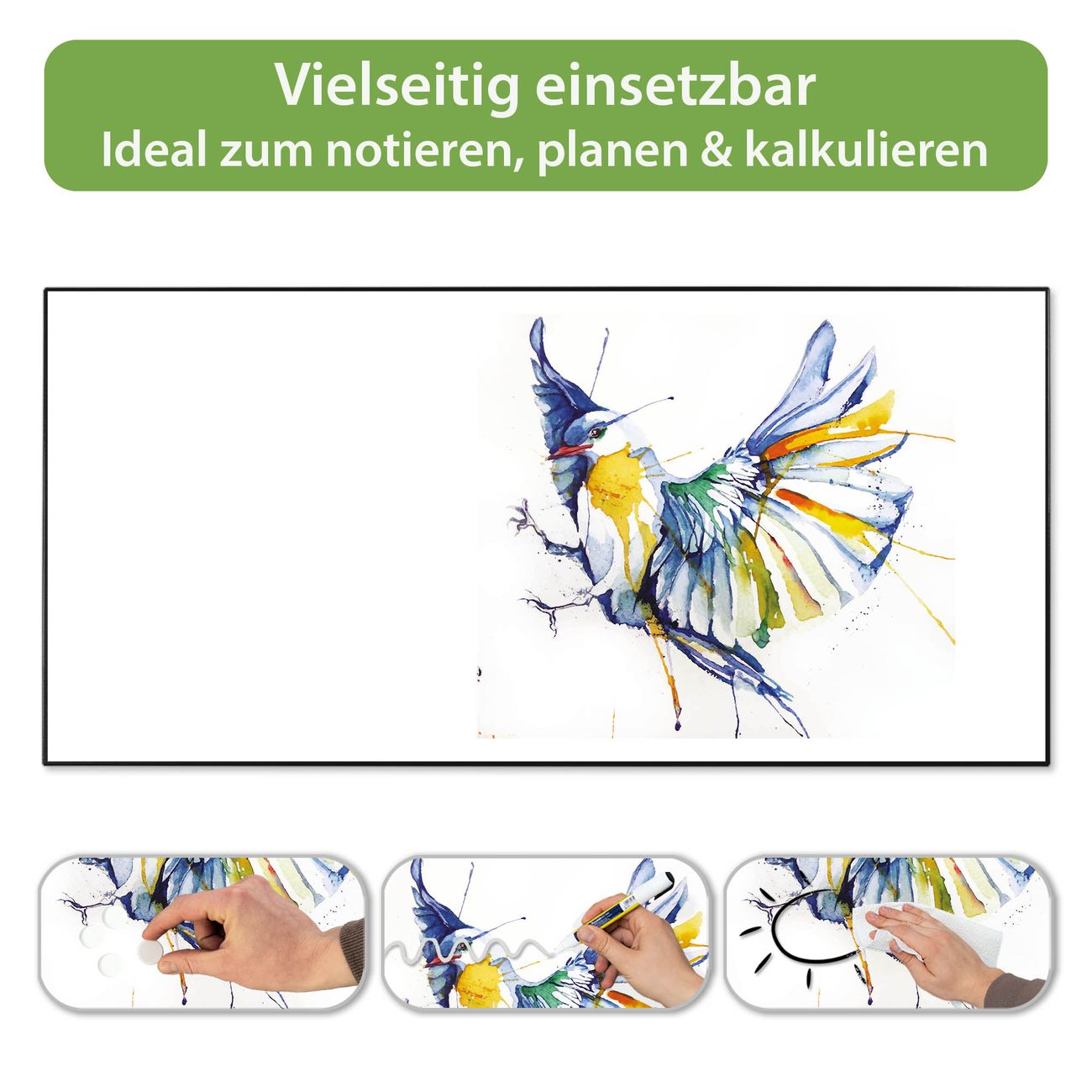 Metall Magnettafel beschreibbar 78x37cm Motiv Aquarell Vogel