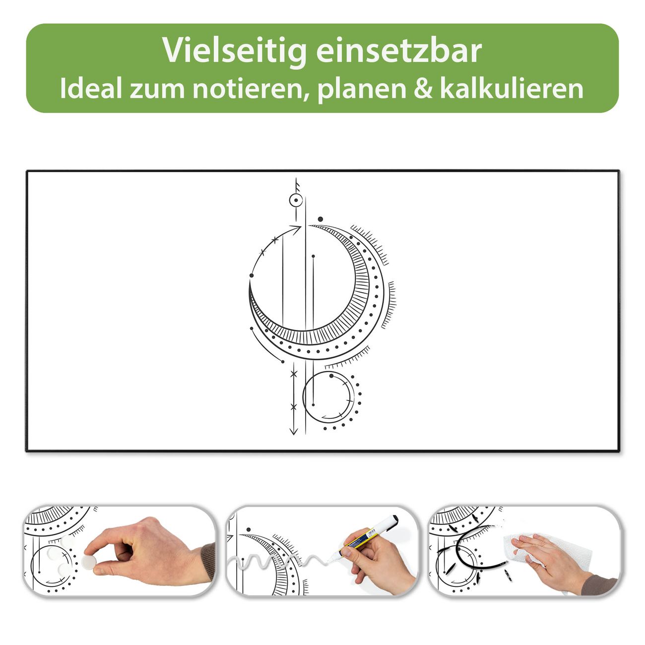 FUNKTION: Die banjado Magnettafel 78x37 cm im Design Motiv Astronomie 6 vereint Funktionalität und modernes Wohndesign auf stilvolle Weise. Diese hochwertige Magnetwand aus Metall hilft Ihnen dabei, Notizen, Fotos, Termine, Einkaufslisten oder Rezepte übersichtlich zu organisieren. Als praktisches Memoboard sorgt sie für Struktur im Alltag und setzt gleichzeitig einen dekorativen Akzent an Ihrer Wand. DESIGN: Die Metalltafel besteht aus robustem, lackiertem Stahl und ist mit allen handelsüblichen Magneten nutzbar. Besonders praktisch ist die beschreibbare Oberfläche. Sie können die Magnettafel ganz einfach mit Kreidestiften beschriften und die Inhalte bei Bedarf mit einem feuchten Tuch wieder entfernen. So eignet sich das Memoboard ideal für Wochenpläne, Menüpläne, To Do Listen oder kreative Botschaften. DETAILS: Mit ihrem großzügigen Querformat von 78x37 cm bietet die Magnettafel ausreichend Platz für Ihre Organisation. Das Motiv Motiv Astronomie 6 bringt eine warme, natürliche Optik in Küche, Flur, Büro oder Homeoffice und wirkt auch ohne Magnete oder Beschriftung wie ein modernes Wandbild. NUTZEN: Auf der Rückseite befinden sich vorgefertigte Löcher für eine schnelle und unkomplizierte Wandmontage. Jede banjado Magnettafel wird in Deutschland gefertigt und steht für Qualität, Langlebigkeit und liebevolle Verarbeitung. Dieses beschreibbare Memoboard ist die perfekte Kombination aus Metalltafel, Designobjekt und praktischer Magnetwand für Ihren Alltag. BANJADO: Wir sind ein kleines Team aus dem Herzen von Sachsen. Wir fertigen alle Artikel von Hand für Sie an, Sie erhalten keine preiswerte Importware. Auf Wunsch können Sie auch Ihr eigenes Foto auf die Magnettafel aufbringen, schreiben Sie uns an. Herzlichst, Ihr banjado-Team