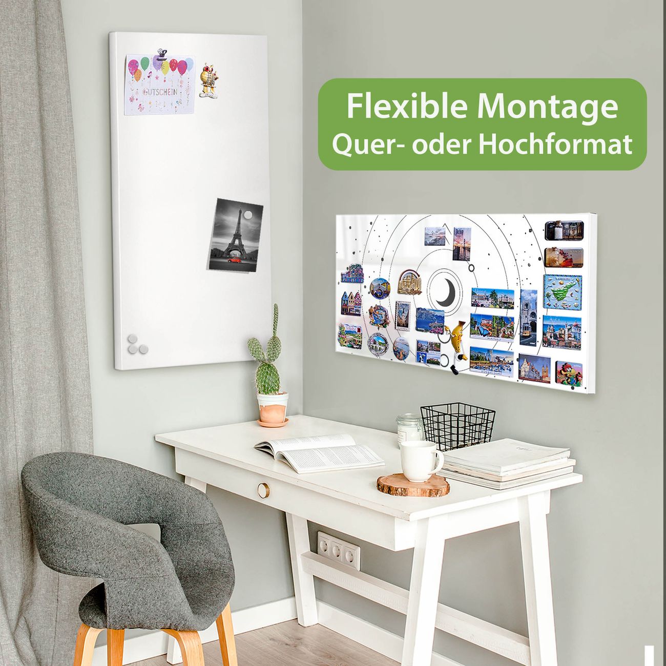 FUNKTION: Die banjado Magnettafel 78x37 cm im Design Motiv Astronomie 8 vereint Funktionalität und modernes Wohndesign auf stilvolle Weise. Diese hochwertige Magnetwand aus Metall hilft Ihnen dabei, Notizen, Fotos, Termine, Einkaufslisten oder Rezepte übersichtlich zu organisieren. Als praktisches Memoboard sorgt sie für Struktur im Alltag und setzt gleichzeitig einen dekorativen Akzent an Ihrer Wand. DESIGN: Die Metalltafel besteht aus robustem, lackiertem Stahl und ist mit allen handelsüblichen Magneten nutzbar. Besonders praktisch ist die beschreibbare Oberfläche. Sie können die Magnettafel ganz einfach mit Kreidestiften beschriften und die Inhalte bei Bedarf mit einem feuchten Tuch wieder entfernen. So eignet sich das Memoboard ideal für Wochenpläne, Menüpläne, To Do Listen oder kreative Botschaften. DETAILS: Mit ihrem großzügigen Querformat von 78x37 cm bietet die Magnettafel ausreichend Platz für Ihre Organisation. Das Motiv Motiv Astronomie 8 bringt eine warme, natürliche Optik in Küche, Flur, Büro oder Homeoffice und wirkt auch ohne Magnete oder Beschriftung wie ein modernes Wandbild. NUTZEN: Auf der Rückseite befinden sich vorgefertigte Löcher für eine schnelle und unkomplizierte Wandmontage. Jede banjado Magnettafel wird in Deutschland gefertigt und steht für Qualität, Langlebigkeit und liebevolle Verarbeitung. Dieses beschreibbare Memoboard ist die perfekte Kombination aus Metalltafel, Designobjekt und praktischer Magnetwand für Ihren Alltag. BANJADO: Wir sind ein kleines Team aus dem Herzen von Sachsen. Wir fertigen alle Artikel von Hand für Sie an, Sie erhalten keine preiswerte Importware. Auf Wunsch können Sie auch Ihr eigenes Foto auf die Magnettafel aufbringen, schreiben Sie uns an. Herzlichst, Ihr banjado-Team
