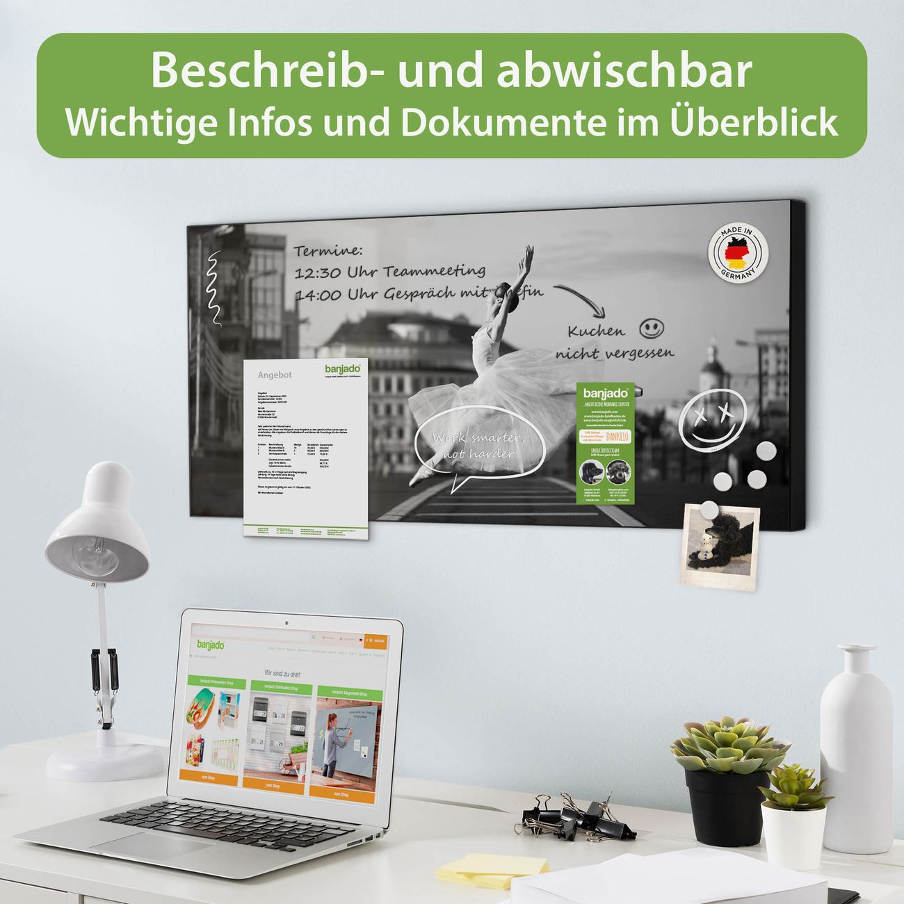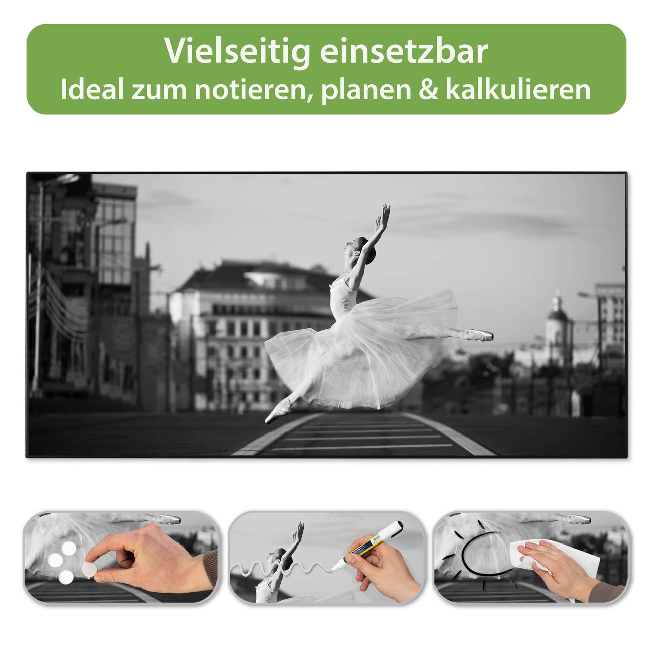 FUNKTION: Die banjado Magnettafel 78x37 cm im Design Motiv Ballerina In Moskau vereint Funktionalität und modernes Wohndesign auf stilvolle Weise. Diese hochwertige Magnetwand aus Metall hilft Ihnen dabei, Notizen, Fotos, Termine, Einkaufslisten oder Rezepte übersichtlich zu organisieren. Als praktisches Memoboard sorgt sie für Struktur im Alltag und setzt gleichzeitig einen dekorativen Akzent an Ihrer Wand. DESIGN: Die Metalltafel besteht aus robustem, lackiertem Stahl und ist mit allen handelsüblichen Magneten nutzbar. Besonders praktisch ist die beschreibbare Oberfläche. Sie können die Magnettafel ganz einfach mit Kreidestiften beschriften und die Inhalte bei Bedarf mit einem feuchten Tuch wieder entfernen. So eignet sich das Memoboard ideal für Wochenpläne, Menüpläne, To Do Listen oder kreative Botschaften. DETAILS: Mit ihrem großzügigen Querformat von 78x37 cm bietet die Magnettafel ausreichend Platz für Ihre Organisation. Das Motiv Motiv Ballerina In Moskau bringt eine warme, natürliche Optik in Küche, Flur, Büro oder Homeoffice und wirkt auch ohne Magnete oder Beschriftung wie ein modernes Wandbild. NUTZEN: Auf der Rückseite befinden sich vorgefertigte Löcher für eine schnelle und unkomplizierte Wandmontage. Jede banjado Magnettafel wird in Deutschland gefertigt und steht für Qualität, Langlebigkeit und liebevolle Verarbeitung. Dieses beschreibbare Memoboard ist die perfekte Kombination aus Metalltafel, Designobjekt und praktischer Magnetwand für Ihren Alltag. BANJADO: Wir sind ein kleines Team aus dem Herzen von Sachsen. Wir fertigen alle Artikel von Hand für Sie an, Sie erhalten keine preiswerte Importware. Auf Wunsch können Sie auch Ihr eigenes Foto auf die Magnettafel aufbringen, schreiben Sie uns an. Herzlichst, Ihr banjado-Team