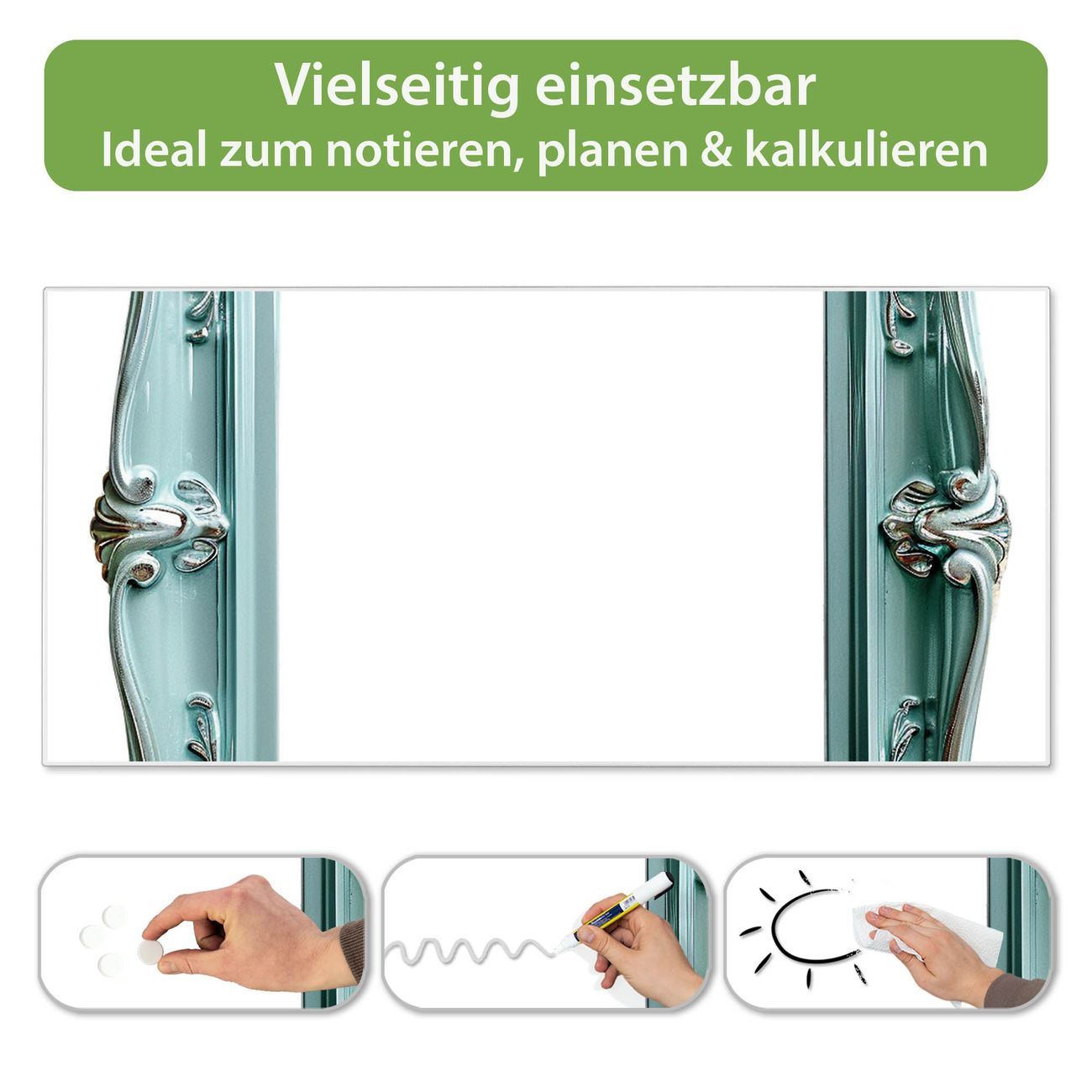 Metall Magnettafel beschreibbar 78x37cm Motiv Barockrahmen in Türkis