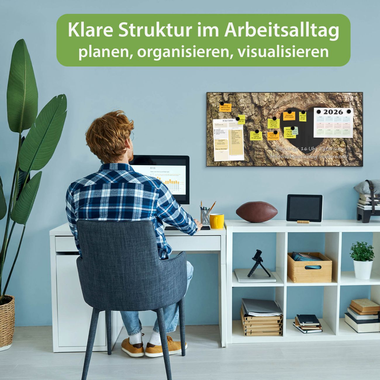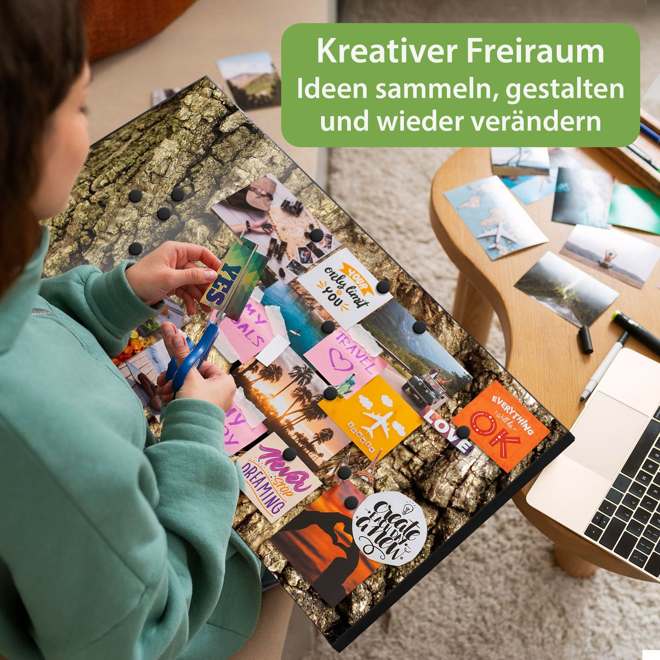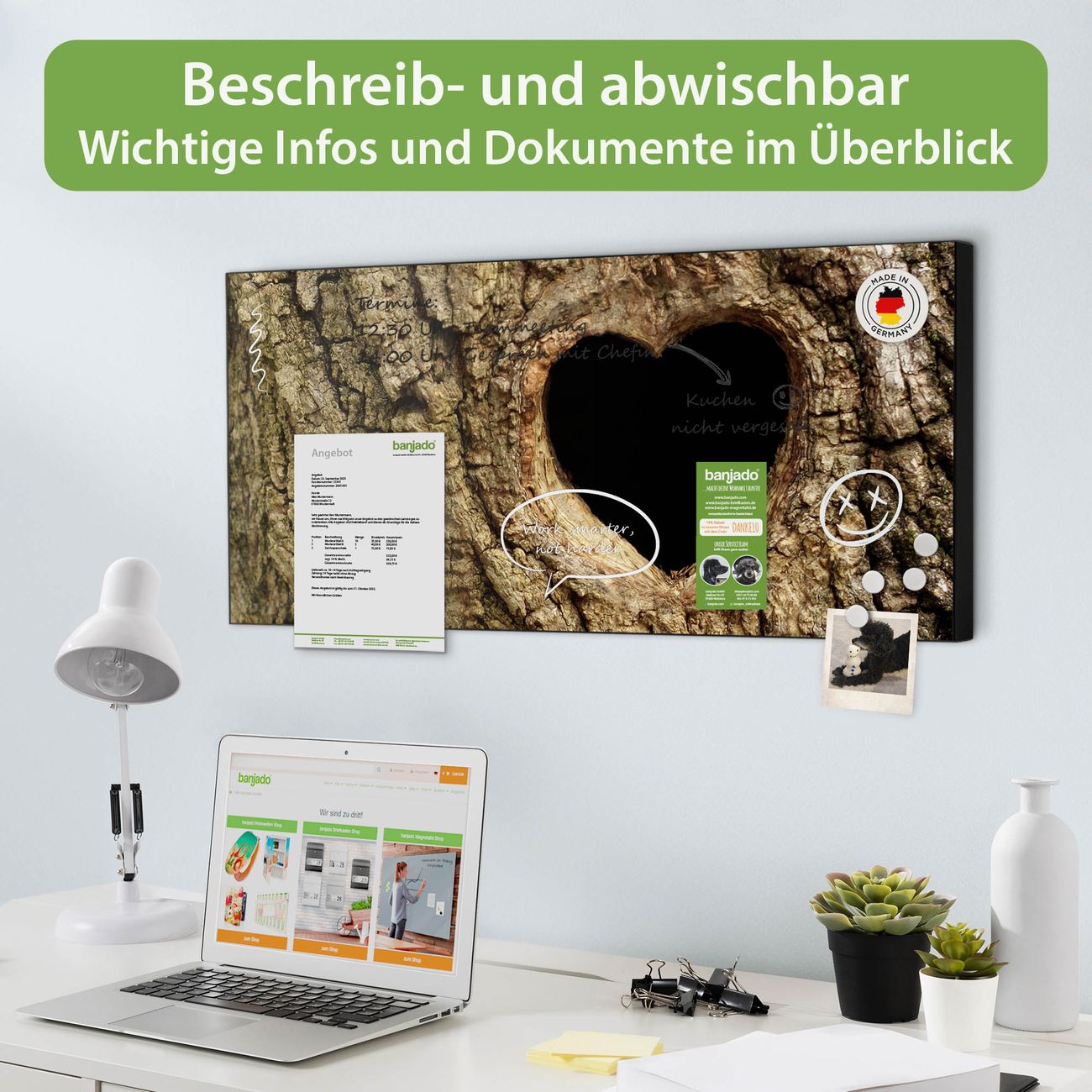 FUNKTION: Die banjado Magnettafel 78x37 cm im Design Motiv Baumherz vereint Funktionalität und modernes Wohndesign auf stilvolle Weise. Diese hochwertige Magnetwand aus Metall hilft Ihnen dabei, Notizen, Fotos, Termine, Einkaufslisten oder Rezepte übersichtlich zu organisieren. Als praktisches Memoboard sorgt sie für Struktur im Alltag und setzt gleichzeitig einen dekorativen Akzent an Ihrer Wand. DESIGN: Die Metalltafel besteht aus robustem, lackiertem Stahl und ist mit allen handelsüblichen Magneten nutzbar. Besonders praktisch ist die beschreibbare Oberfläche. Sie können die Magnettafel ganz einfach mit Kreidestiften beschriften und die Inhalte bei Bedarf mit einem feuchten Tuch wieder entfernen. So eignet sich das Memoboard ideal für Wochenpläne, Menüpläne, To Do Listen oder kreative Botschaften. DETAILS: Mit ihrem großzügigen Querformat von 78x37 cm bietet die Magnettafel ausreichend Platz für Ihre Organisation. Das Motiv Motiv Baumherz bringt eine warme, natürliche Optik in Küche, Flur, Büro oder Homeoffice und wirkt auch ohne Magnete oder Beschriftung wie ein modernes Wandbild. NUTZEN: Auf der Rückseite befinden sich vorgefertigte Löcher für eine schnelle und unkomplizierte Wandmontage. Jede banjado Magnettafel wird in Deutschland gefertigt und steht für Qualität, Langlebigkeit und liebevolle Verarbeitung. Dieses beschreibbare Memoboard ist die perfekte Kombination aus Metalltafel, Designobjekt und praktischer Magnetwand für Ihren Alltag. BANJADO: Wir sind ein kleines Team aus dem Herzen von Sachsen. Wir fertigen alle Artikel von Hand für Sie an, Sie erhalten keine preiswerte Importware. Auf Wunsch können Sie auch Ihr eigenes Foto auf die Magnettafel aufbringen, schreiben Sie uns an. Herzlichst, Ihr banjado-Team
