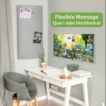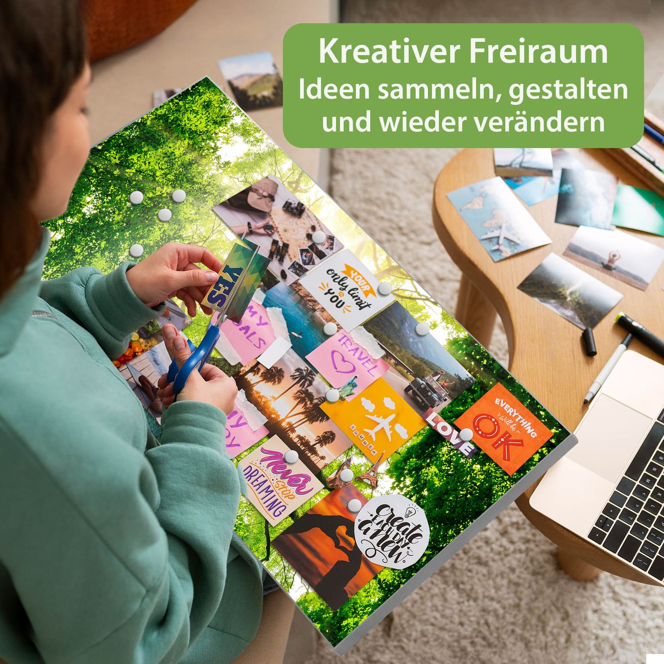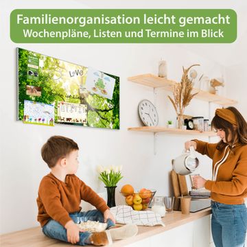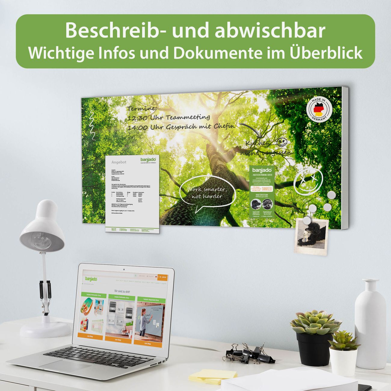 FUNKTION: Die banjado Magnettafel 78x37 cm im Design Motiv Baumkrone vereint Funktionalität und modernes Wohndesign auf stilvolle Weise. Diese hochwertige Magnetwand aus Metall hilft Ihnen dabei, Notizen, Fotos, Termine, Einkaufslisten oder Rezepte übersichtlich zu organisieren. Als praktisches Memoboard sorgt sie für Struktur im Alltag und setzt gleichzeitig einen dekorativen Akzent an Ihrer Wand. DESIGN: Die Metalltafel besteht aus robustem, lackiertem Stahl und ist mit allen handelsüblichen Magneten nutzbar. Besonders praktisch ist die beschreibbare Oberfläche. Sie können die Magnettafel ganz einfach mit Kreidestiften beschriften und die Inhalte bei Bedarf mit einem feuchten Tuch wieder entfernen. So eignet sich das Memoboard ideal für Wochenpläne, Menüpläne, To Do Listen oder kreative Botschaften. DETAILS: Mit ihrem großzügigen Querformat von 78x37 cm bietet die Magnettafel ausreichend Platz für Ihre Organisation. Das Motiv Motiv Baumkrone bringt eine warme, natürliche Optik in Küche, Flur, Büro oder Homeoffice und wirkt auch ohne Magnete oder Beschriftung wie ein modernes Wandbild. NUTZEN: Auf der Rückseite befinden sich vorgefertigte Löcher für eine schnelle und unkomplizierte Wandmontage. Jede banjado Magnettafel wird in Deutschland gefertigt und steht für Qualität, Langlebigkeit und liebevolle Verarbeitung. Dieses beschreibbare Memoboard ist die perfekte Kombination aus Metalltafel, Designobjekt und praktischer Magnetwand für Ihren Alltag. BANJADO: Wir sind ein kleines Team aus dem Herzen von Sachsen. Wir fertigen alle Artikel von Hand für Sie an, Sie erhalten keine preiswerte Importware. Auf Wunsch können Sie auch Ihr eigenes Foto auf die Magnettafel aufbringen, schreiben Sie uns an. Herzlichst, Ihr banjado-Team