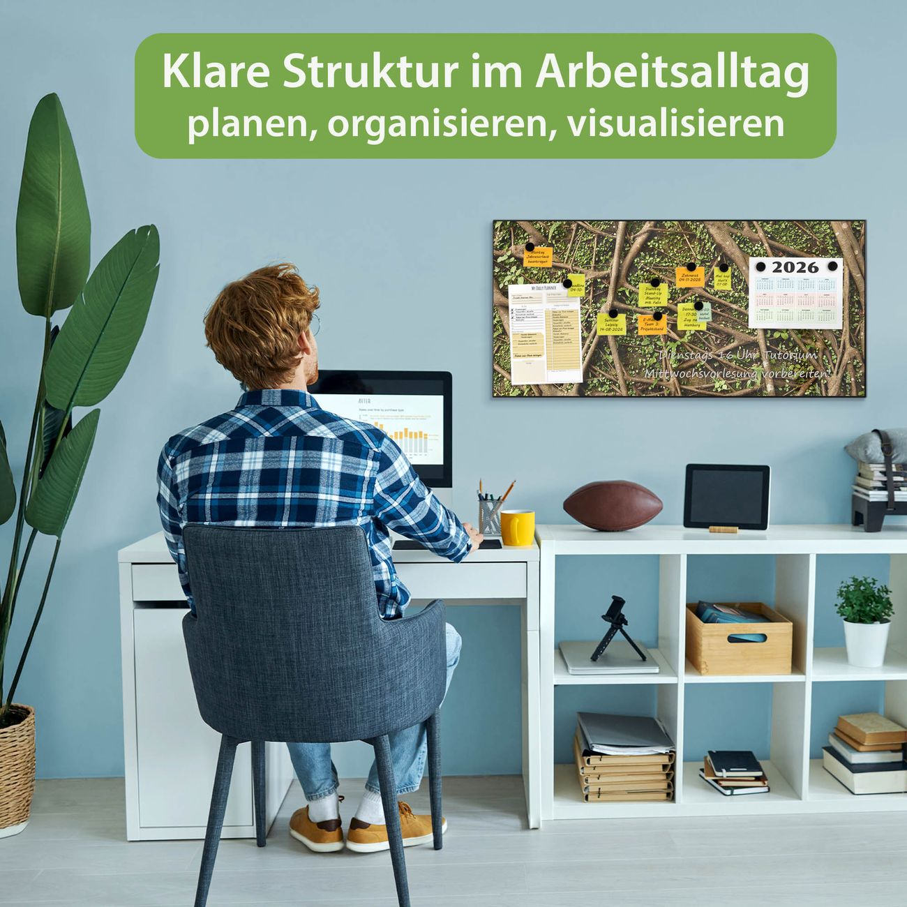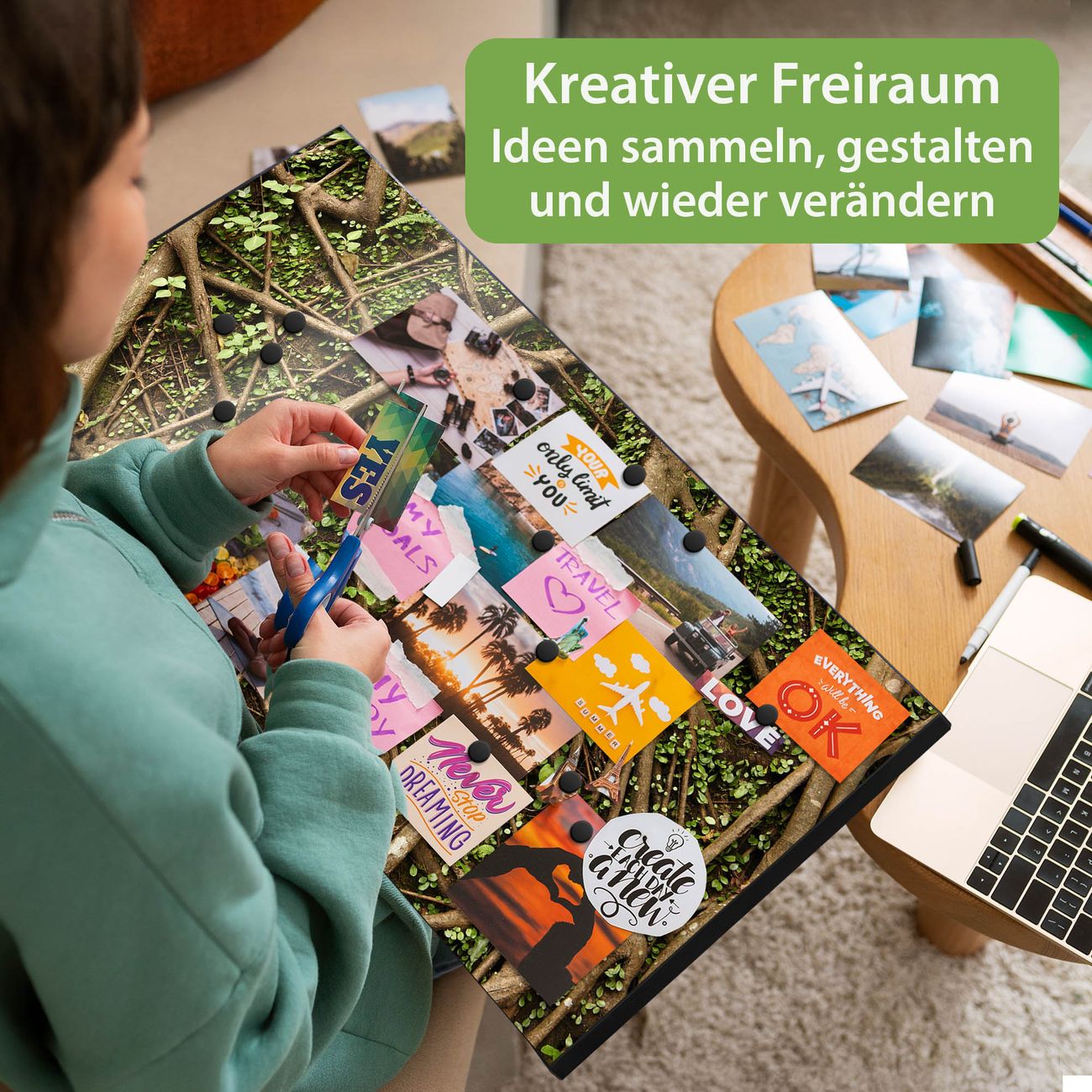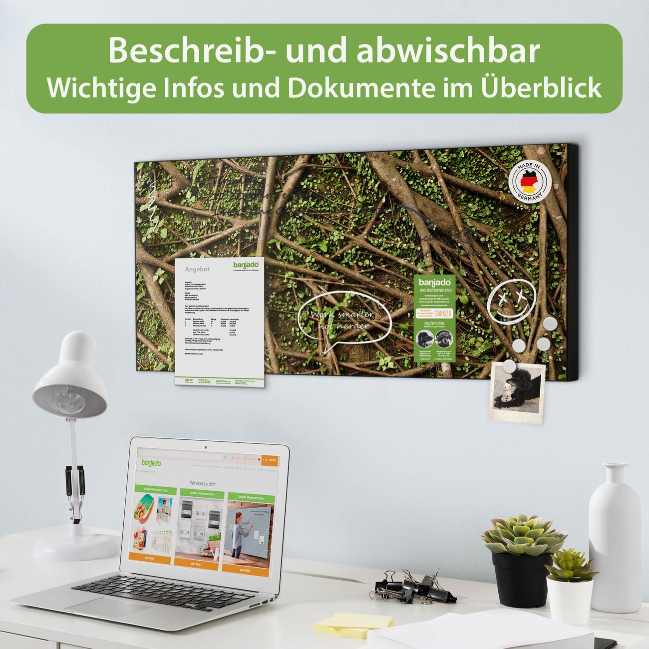 FUNKTION: Die banjado Magnettafel 78x37 cm im Design Motiv Baumwurzel vereint Funktionalität und modernes Wohndesign auf stilvolle Weise. Diese hochwertige Magnetwand aus Metall hilft Ihnen dabei, Notizen, Fotos, Termine, Einkaufslisten oder Rezepte übersichtlich zu organisieren. Als praktisches Memoboard sorgt sie für Struktur im Alltag und setzt gleichzeitig einen dekorativen Akzent an Ihrer Wand. DESIGN: Die Metalltafel besteht aus robustem, lackiertem Stahl und ist mit allen handelsüblichen Magneten nutzbar. Besonders praktisch ist die beschreibbare Oberfläche. Sie können die Magnettafel ganz einfach mit Kreidestiften beschriften und die Inhalte bei Bedarf mit einem feuchten Tuch wieder entfernen. So eignet sich das Memoboard ideal für Wochenpläne, Menüpläne, To Do Listen oder kreative Botschaften. DETAILS: Mit ihrem großzügigen Querformat von 78x37 cm bietet die Magnettafel ausreichend Platz für Ihre Organisation. Das Motiv Motiv Baumwurzel bringt eine warme, natürliche Optik in Küche, Flur, Büro oder Homeoffice und wirkt auch ohne Magnete oder Beschriftung wie ein modernes Wandbild. NUTZEN: Auf der Rückseite befinden sich vorgefertigte Löcher für eine schnelle und unkomplizierte Wandmontage. Jede banjado Magnettafel wird in Deutschland gefertigt und steht für Qualität, Langlebigkeit und liebevolle Verarbeitung. Dieses beschreibbare Memoboard ist die perfekte Kombination aus Metalltafel, Designobjekt und praktischer Magnetwand für Ihren Alltag. BANJADO: Wir sind ein kleines Team aus dem Herzen von Sachsen. Wir fertigen alle Artikel von Hand für Sie an, Sie erhalten keine preiswerte Importware. Auf Wunsch können Sie auch Ihr eigenes Foto auf die Magnettafel aufbringen, schreiben Sie uns an. Herzlichst, Ihr banjado-Team