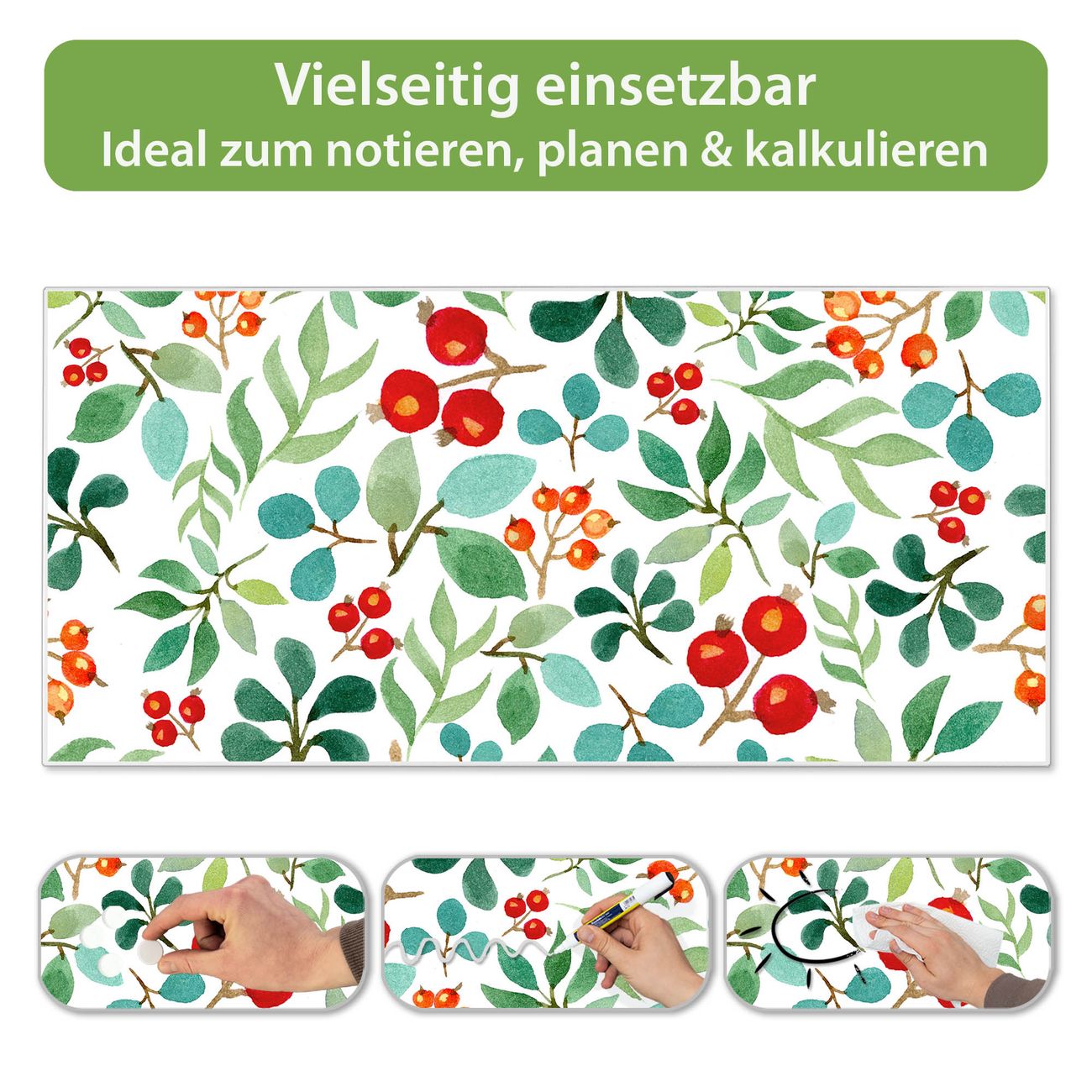 Metall Magnettafel beschreibbar 78x37cm Motiv Beeren und Blätter